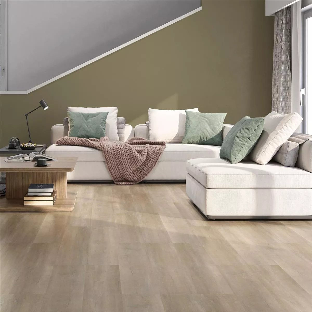 Το δάπεδο βινυλίου Delano με ανοιχτό μπεζ σύστημα κλικ είναι μια εναλλακτική λύση στις συμβατικές επενδύσεις δαπέδου. Αυτή η επένδυση δαπέδου είναι κατασκευασμένη από βινύλιο και έχει πάχος 5mm. Το ένα πακέτο περιέχει 2,17m². Η εμφάνιση είναι μια εμφάνιση από φυσικό ξύλο στα χρώματα ανοιχτό μπεζ, καφέ και μπεζ.