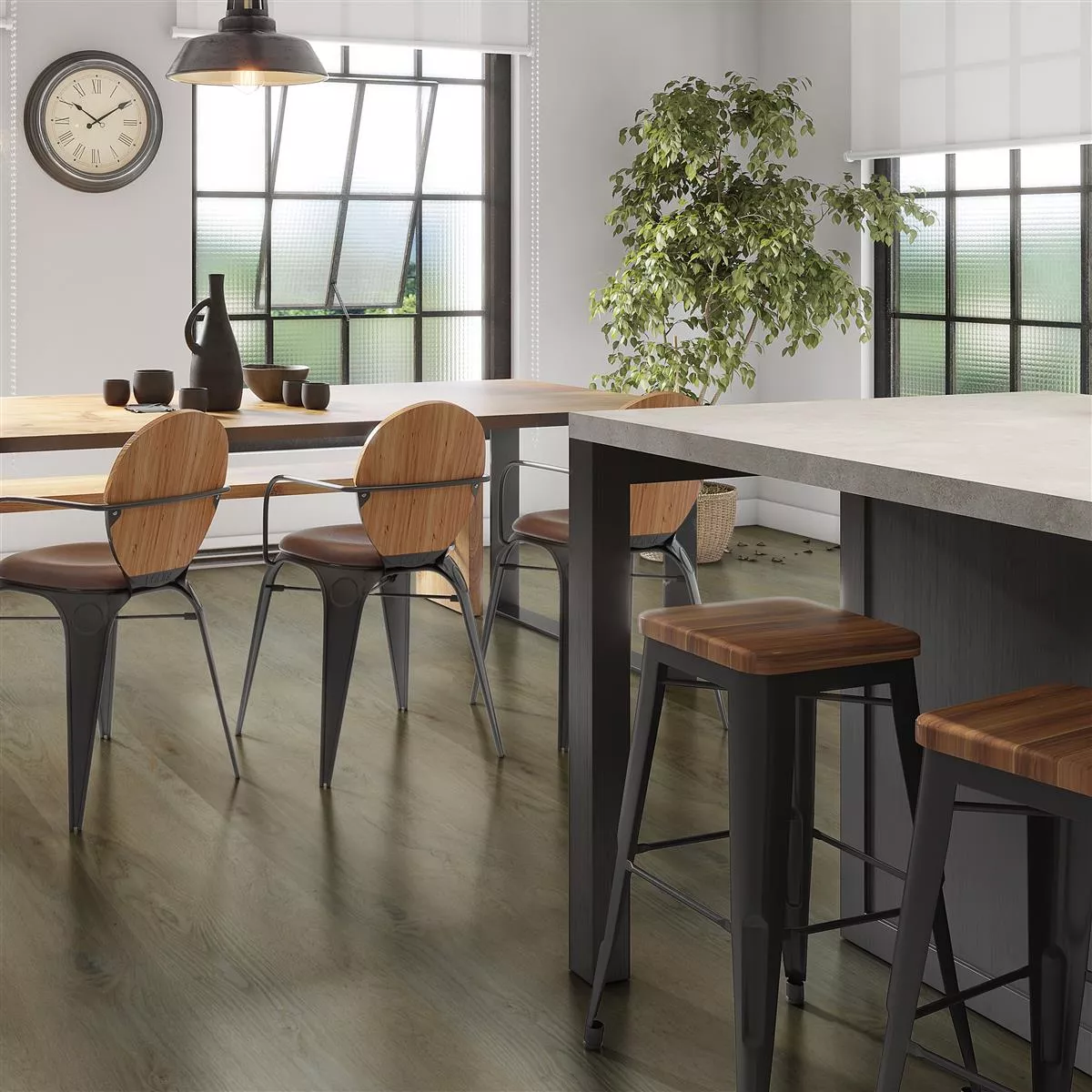 Το δάπεδο βινυλίου του Hollywood click system σε ζεστό καφέ δίνει στα δωμάτια σας μια ζεστή και διαχρονικά κομψή εμφάνιση. Αυτό το δάπεδο υψηλής ποιότητας συνδυάζει μια ελκυστική ξύλινη εμφάνιση με τη μοντέρνα άνεση για να δημιουργήσει μια φιλόξενη ατμόσφαιρα.