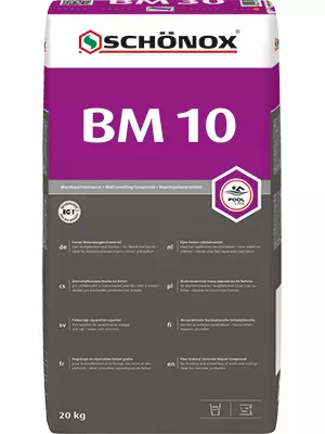 για λείανση, ισοπέδωση, σοβάτισμα και επισκευή επιφανειών τοίχων από σκυρόδεμα, πορομπετόν, τοιχοποιία και άλλα υποστρώματα με βάση το τσιμέντο. Επικαλυμμένο με ρητίνη, αδιάβροχο και ελαστικό. Το SCHÖNOX BM 10 αναπτύσσει περίπου 90% λιγότερη σκόνη όταν αναμιγνύεται με νερό χάρη στις πιο σύγχρονες πρώτες ύλες και τις καινοτόμες διαδικασίες παραγωγής. Για πάχη στρώσης 1-10 mm χωρίς διογκωμένο υλικό. Τεντώσιμο έως 20 mm. Για εσωτερικούς και εξωτερικούς χώρους.