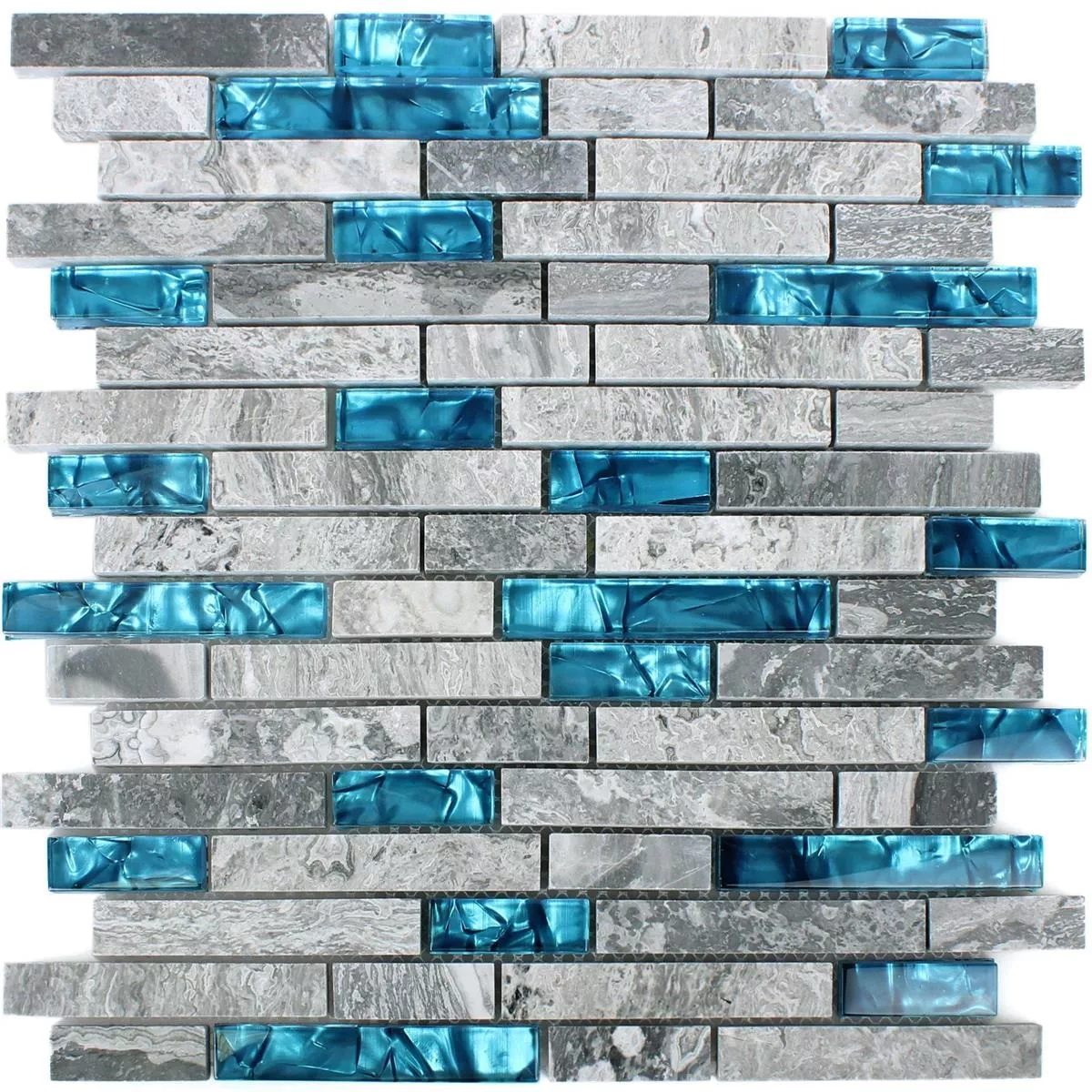 Glasmosaik Natursteinfliesen Sinop Grau Blau Stick