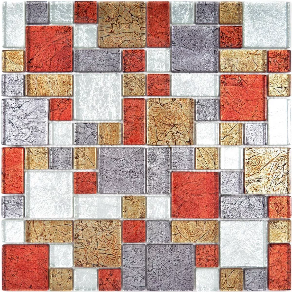 Γυάλινο Μωσαϊκό Πλακάκια Curlew Kόκκινο Kαφέ Ασήμι 2 Mix