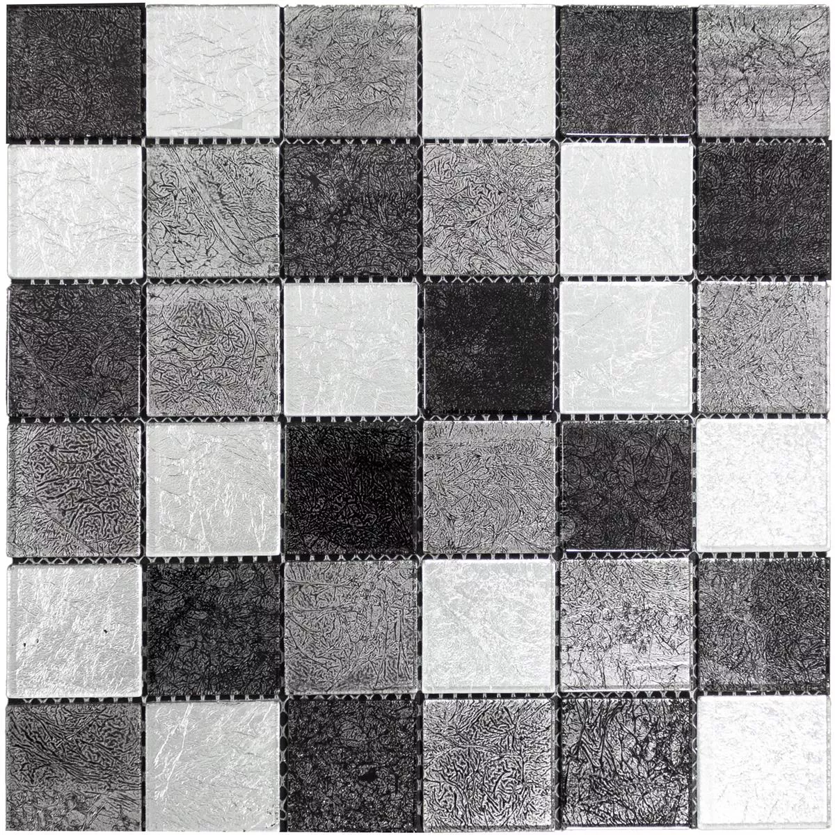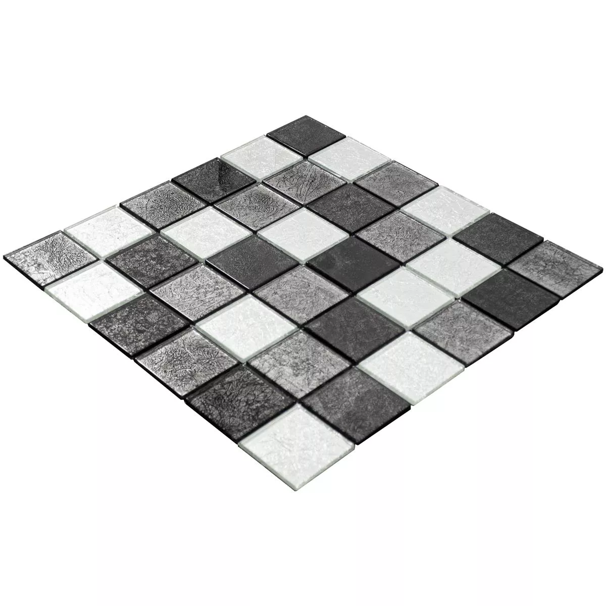 Γυάλινο Μωσαϊκό Πλακάκια Curlew Μαύρος Ασήμι Q48 4mm