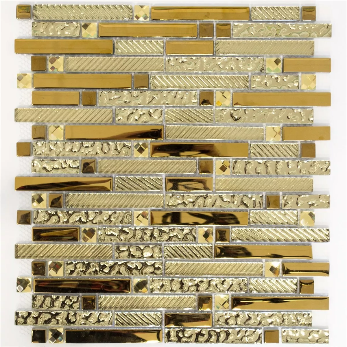 Γυάλινο Μωσαϊκό Πλακάκια Δομημένος Χρυσός 15x62x8mm