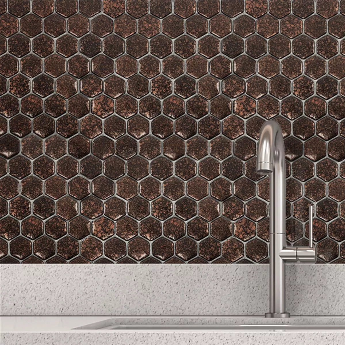 Γυάλινο Μωσαϊκό Πλακάκια Leopard Εξάγωνο 3D Μπρούντζος