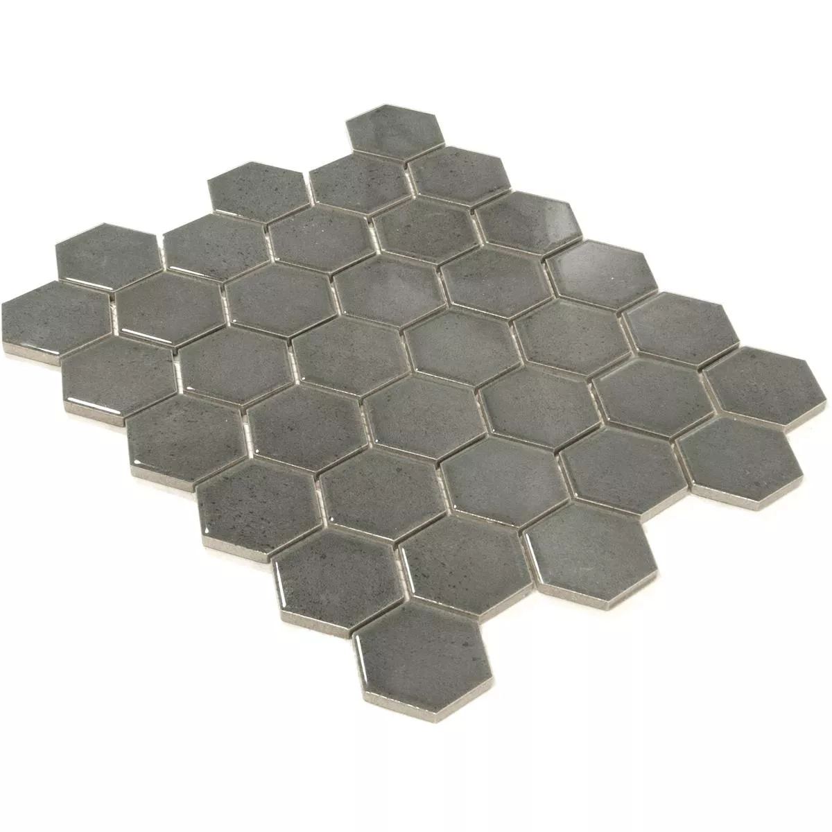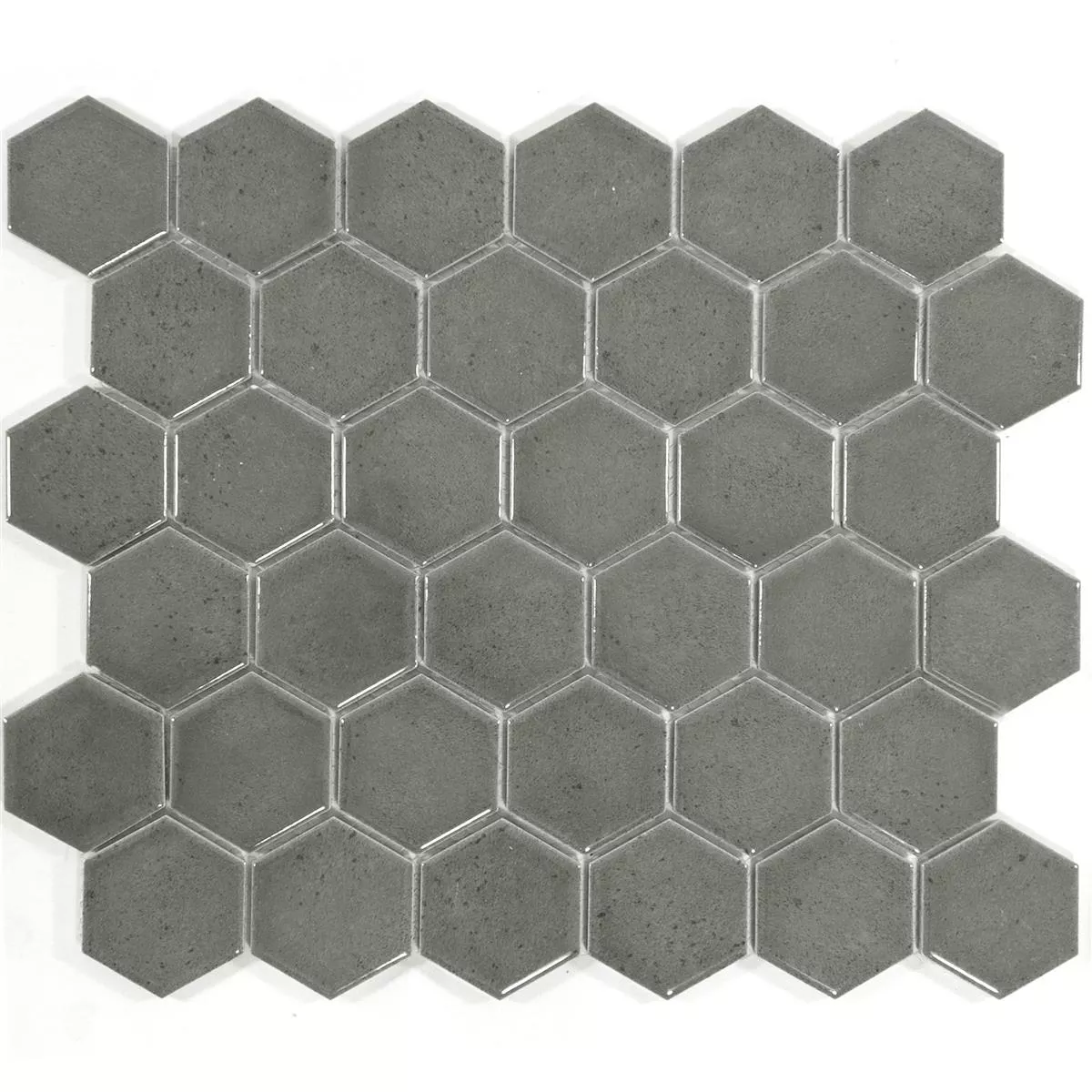 Τα κεραμικά μωσαϊκά πλακάκια "Eldertown Hexagon Grey" δίνουν στο δωμάτιό σας μια μοντέρνα κομψότητα. Με γυαλιστερή επιφάνεια και εξαγωνικό σχήμα (32x28 cm), αυτά τα μωσαϊκά και τα πλακάκια τοίχου αποτελούν μια κομψή προσθήκη σε κουζίνες, ντους, υγρούς χώρους και σαλόνια. Ένα χαλάκι (0,092m²) ζυγίζει μόνο 1,25 kg και είναι εύκολο στο χειρισμό χάρη στο πάχος του 7mm.