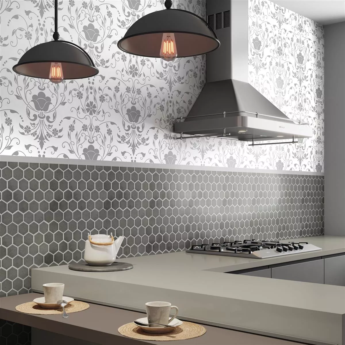Kεραμικά Ψηφιδωτά Πλακάκια Eldertown Εξάγωνο Γκρί