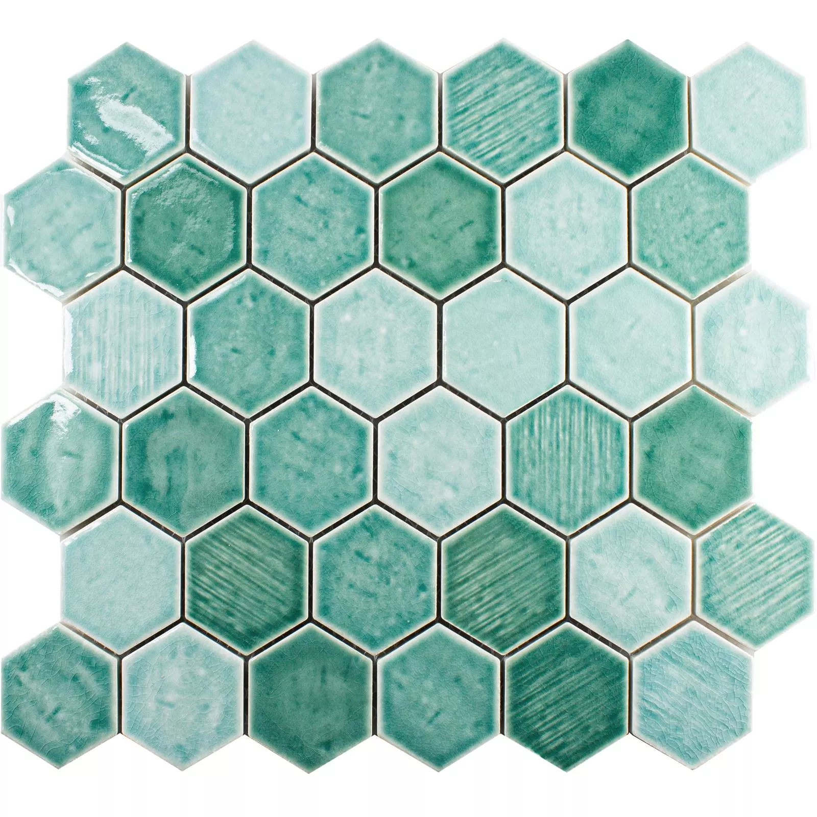 Kεραμικά Ψηφιδωτό Πλακάκι Roseburg Εξάγωνο Αστραφτερό Τουρκουάζ