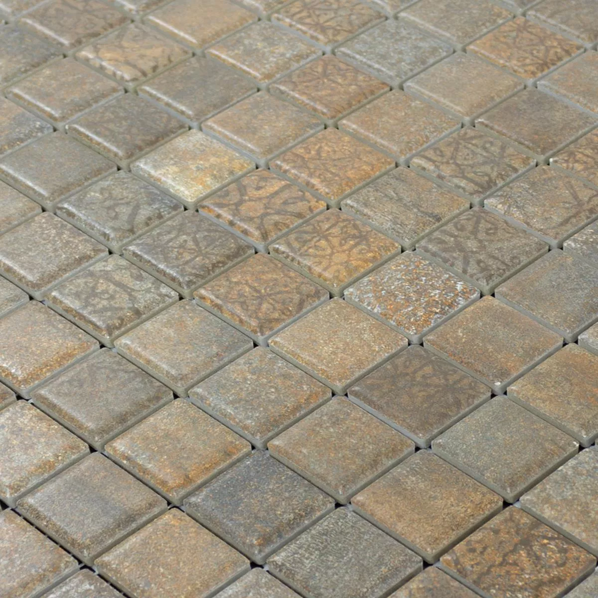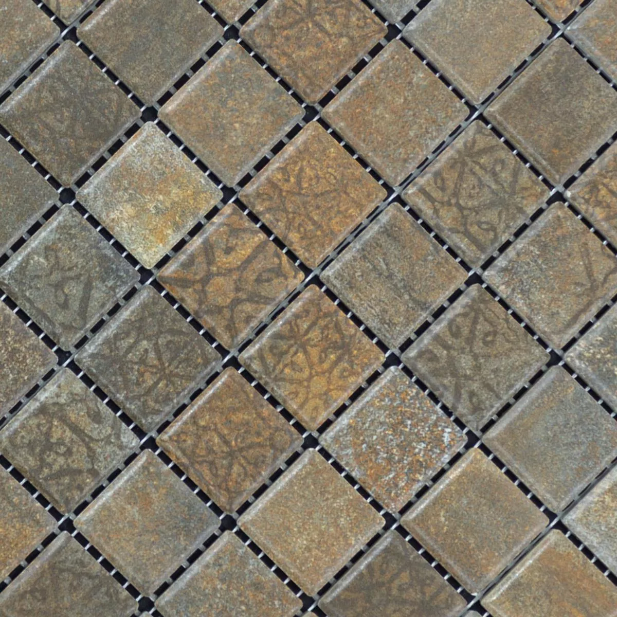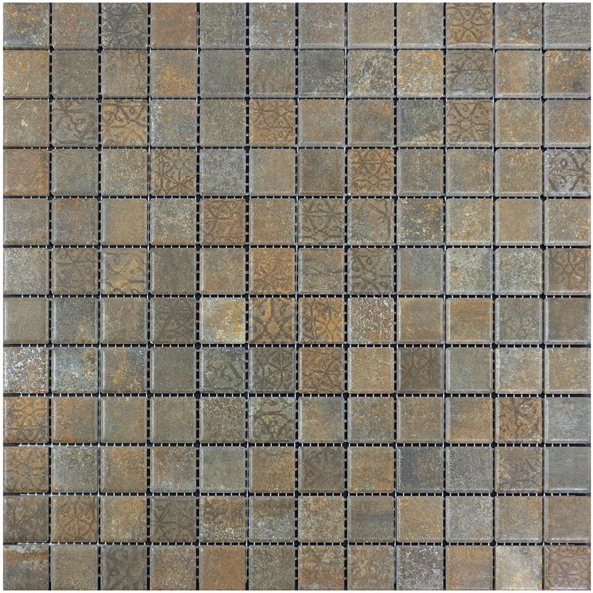 Kεραμικό Mωσαϊκό Πλακάκια Lusco Μεταλλική Εμφάνιση Σκουριά Kαφέ