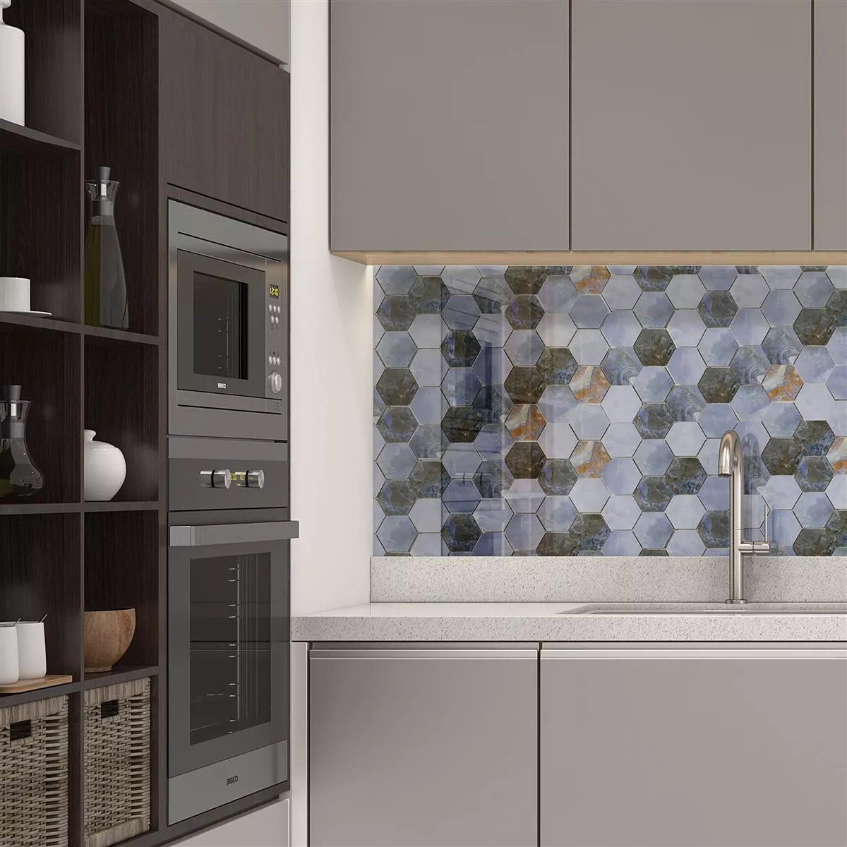 Kεραμικό Mωσαϊκό Πλακάκια Naftalin Εξάγωνο Μπλε Μαύρος