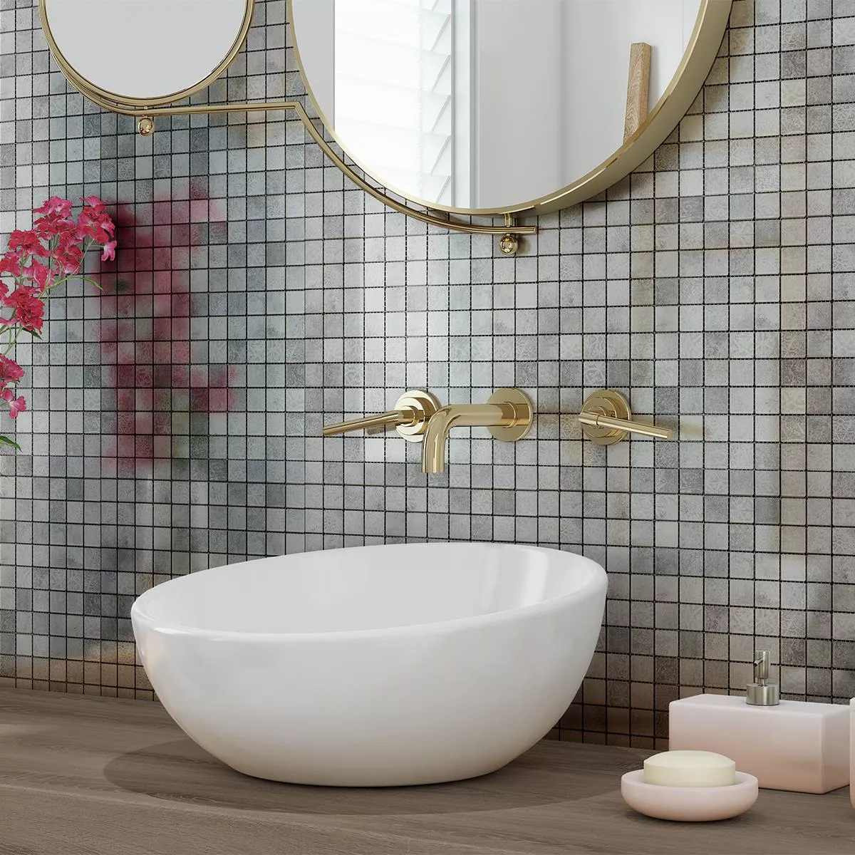 Το κεραμικό μωσαϊκό πλακάκι Terraviva σε κομψό γκρι χρώμα δίνει σε κάθε δωμάτιο μια μοντέρνα τσιμεντένια εμφάνιση και ταυτόχρονα φέρνει λειτουργικότητα και στυλ στα δωμάτιά σας. Το ματ φινίρισμα και το μέγεθος πέτρας 23 x 23 mm παρέχουν μια καθαρή και σύγχρονη αισθητική. Με το πρακτικό πατάκι πλακιδίων διαστάσεων 29,7 x 29,7 cm, το οποίο είναι ήδη κολλημένο σε δίχτυ έτοιμο για τοποθέτηση, η τοποθέτηση τόσο σε τοίχους όσο και σε δάπεδα είναι ιδιαίτερα εύκολη και ακριβής.