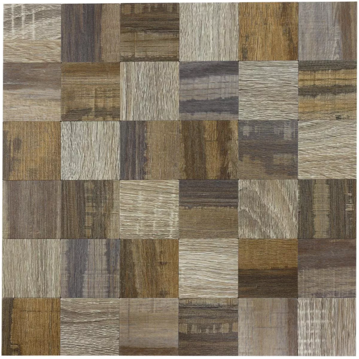 Mέταλλο Ψηφιδωτό Πλακάκι Aυτοκόλλητες Όψη Ξύλου Skypia Kαφέ Μπεζ