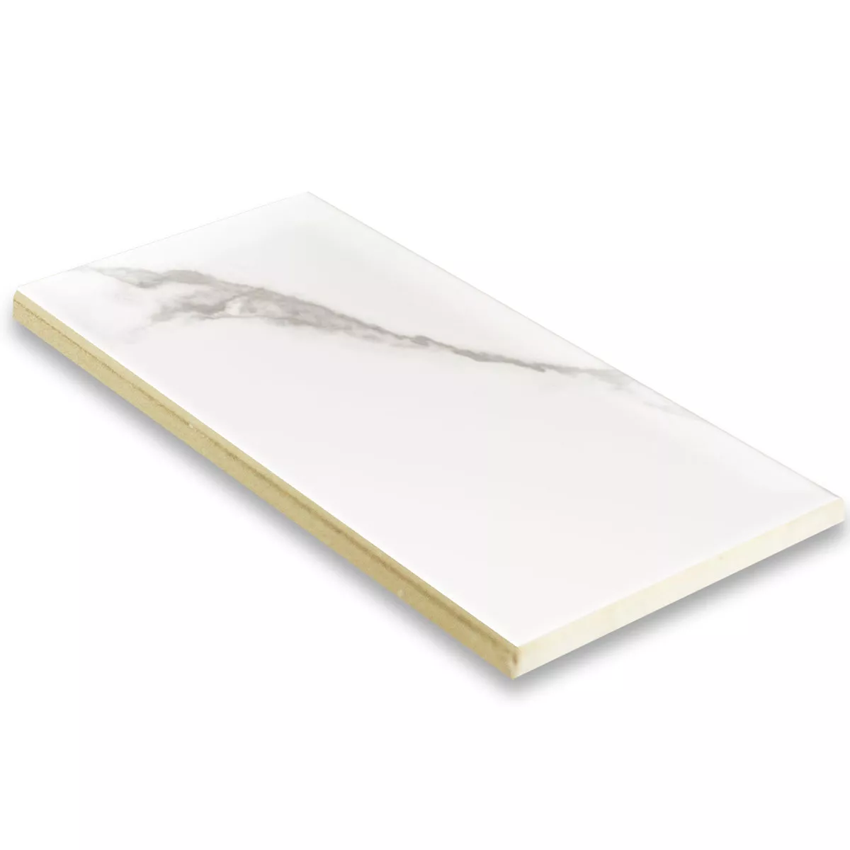 Η συσκευασία περιέχει ένα γενναιόδωρο 1 τετραγωνικό μέτρο από αυτά τα ορθογώνια πλακάκια, 10x20 cm, τα οποία λάμπουν σε λαμπερό λευκό. Η ματ επιφάνεια δίνει στο δωμάτιό σας μια κομψή λάμψη και αντανακλά το φως με ελκυστικό τρόπο, ενώ η μαρμάρινη εμφάνιση δημιουργεί ένα συναρπαστικό παιχνίδι φωτός και σκιάς.