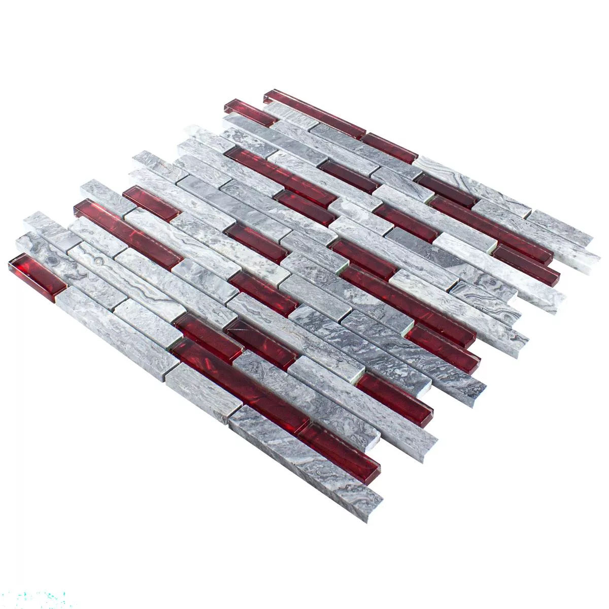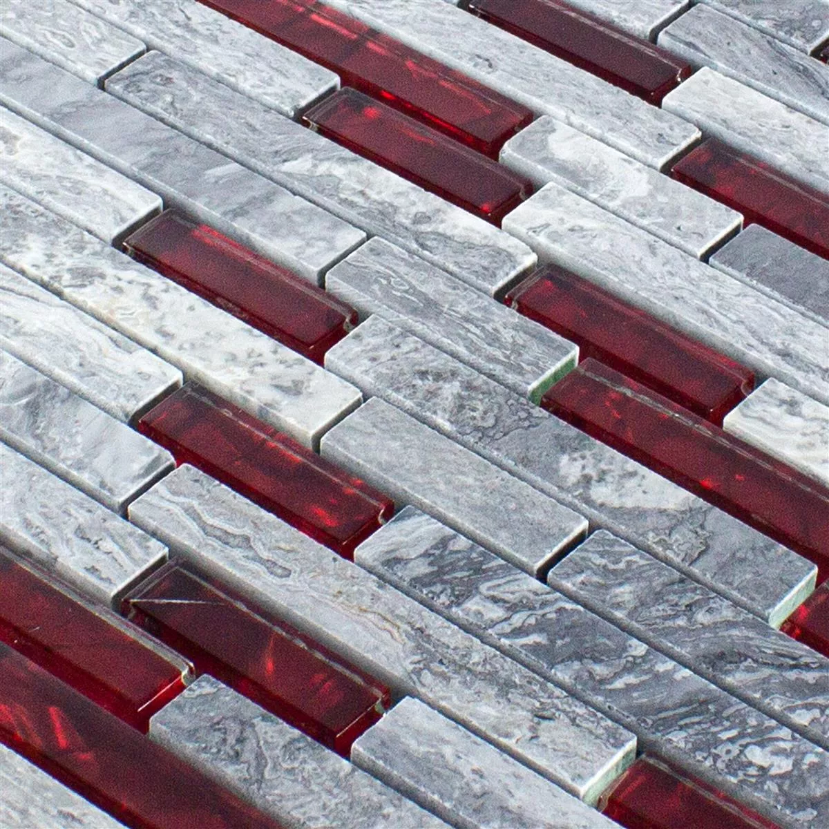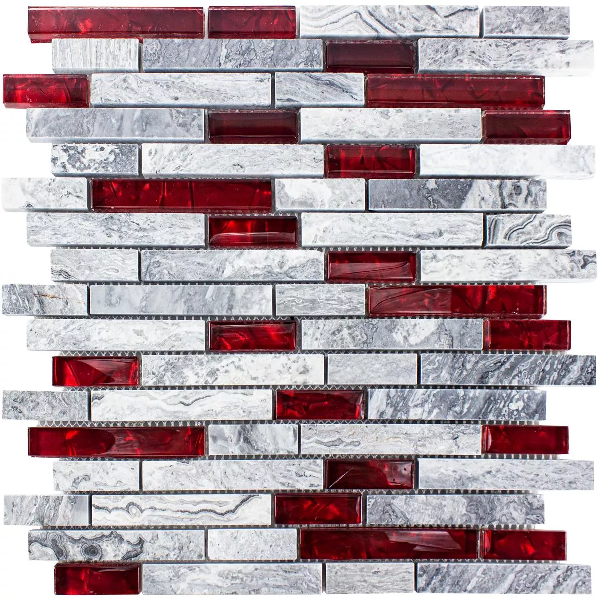 Μωσαϊκό Από Γυαλί Φυσική Πέτρα Πλακάκια Sinop Γκρί Kόκκινο Brick