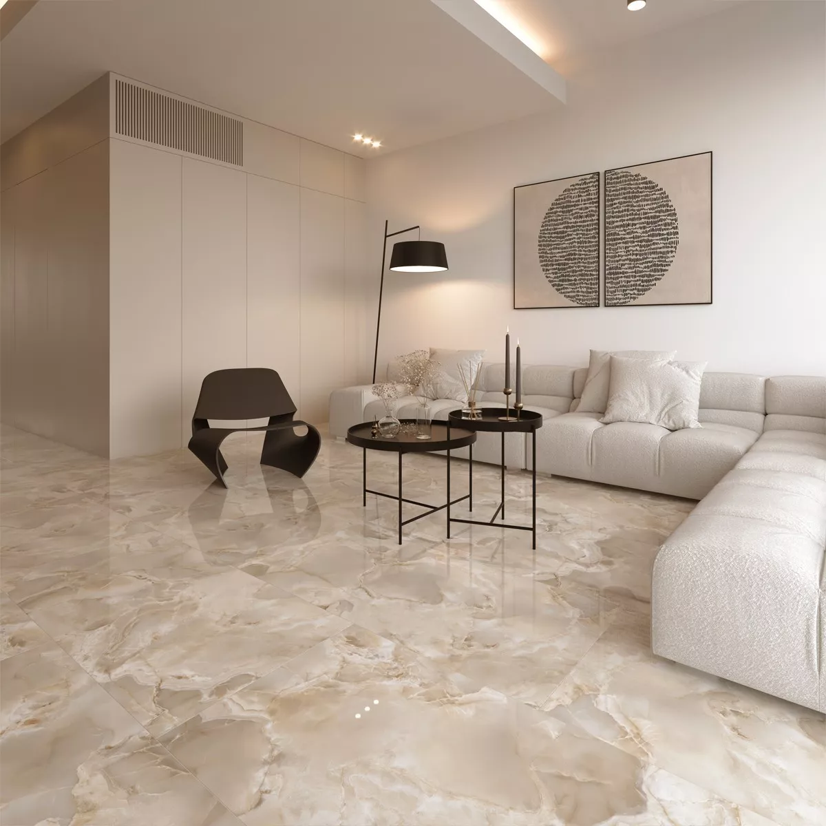 Το μήκος των 60 εκ. συμβάλλει στην κομψή και καθαρή εμφάνιση του πλακιδίου. Εκτός από το εκπληκτικό γκρι χρώμα, η απαλή γυαλάδα της γυαλισμένης επιφάνειας προσθέτει μια επιπλέον πινελιά αποκλειστικότητας στο δωμάτιό σας.