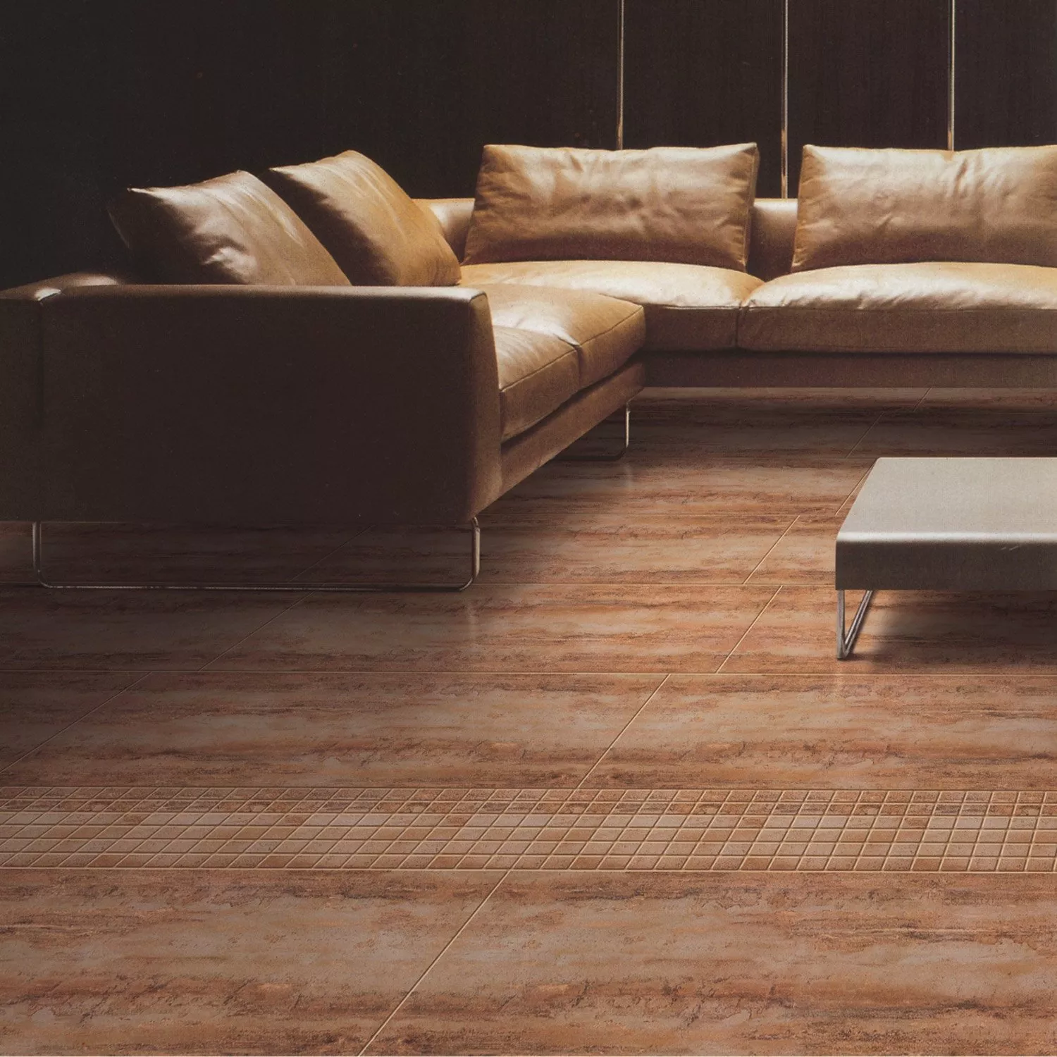 Αυτά τα πλακάκια δαπέδου είναι γυαλισμένα, γεγονός που δημιουργεί ένα συναρπαστικό αποτέλεσμα. Είναι κατασκευασμένα από ανθεκτική πορσελάνη, έτσι ώστε να είναι τέλεια όχι μόνο στο σαλόνι, αλλά και ως δάπεδο σε ένα πολυσύχναστο δημόσιο κτίριο. Στο σαλόνι ή στο διάδρομο, αυτά τα πλακάκια αποδεικνύονται μια ενδιαφέρουσα αντίστιξη σε κάθε έπιπλο. Έχουν βαθμονομηθεί και υαλοποιηθεί. Τα πλακάκια μπορούν επίσης να χρησιμοποιηθούν καλά στο σαλόνι εάν έχει τοποθετηθεί ενδοδαπέδια θέρμανση. Δεν προσβάλλουν και επίσης μεταφέρουν τη θερμότητα πολύ καλά.