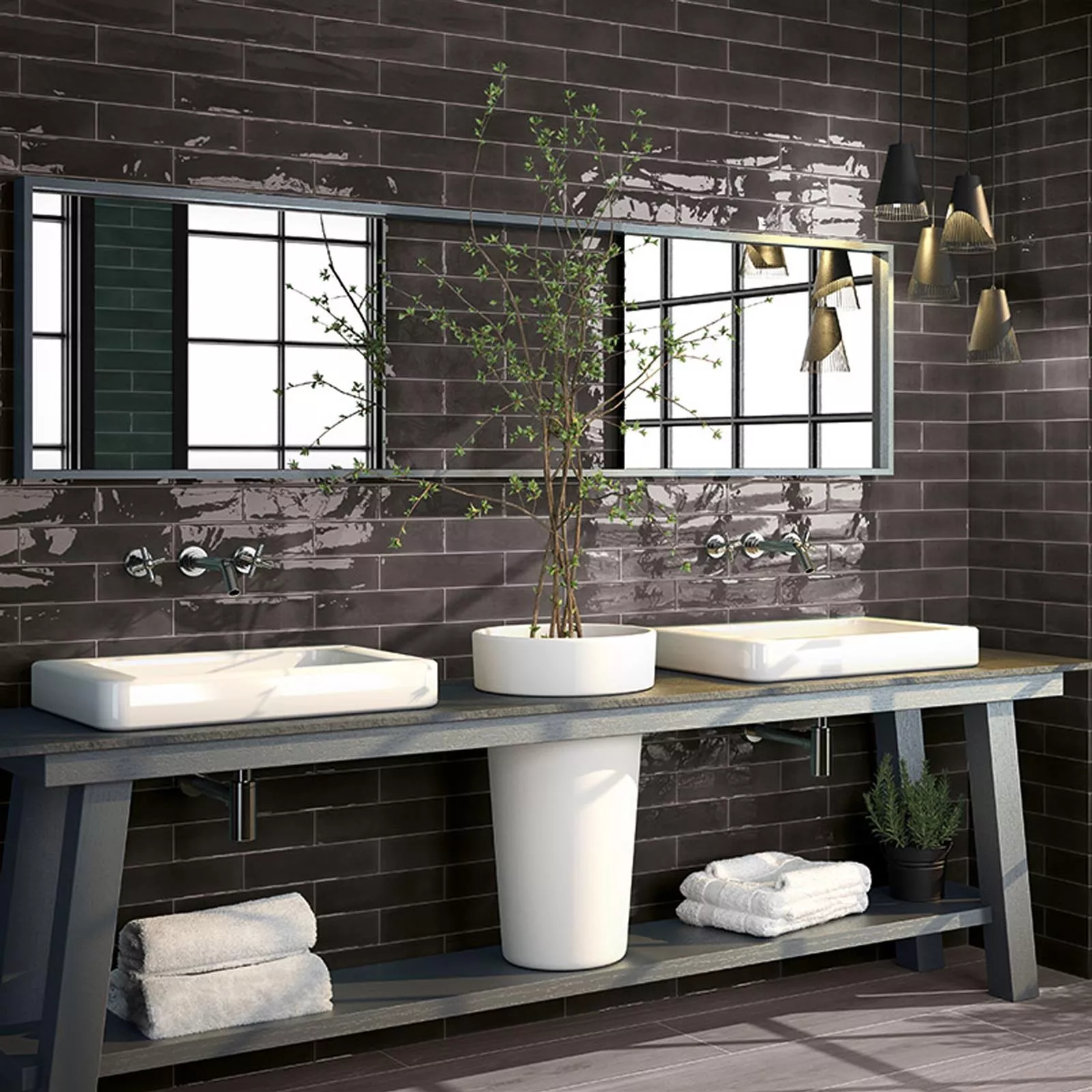 Το πλακάκι τοίχου Conway θα μαγέψει το μπάνιο σας και έχει ένα όμορφο, κυματιστό σχέδιο επιφάνειας. Αυτό το πλακάκι τοίχου είναι μαύρο, η επιφάνεια των πλακιδίων είναι γυαλιστερή και το υλικό αυτού του πλακιδίου τοίχου είναι κατασκευασμένο από πέτρινο σκεύος μεγάλης διάρκειας. Το υλικό είναι πολύ στιβαρό και το σχέδιο της επιφάνειας κάνει κάθε μπάνιο να λάμπει.