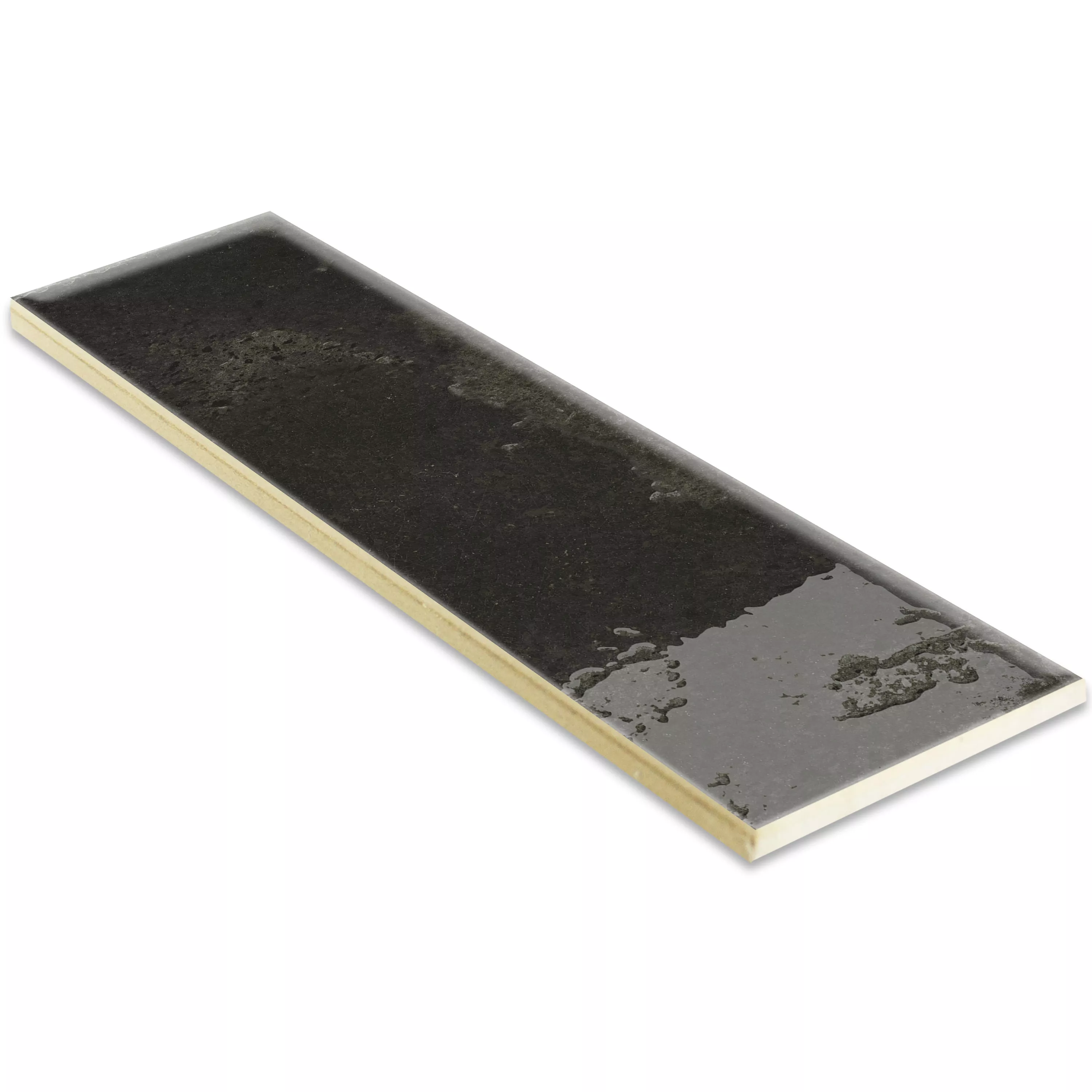 Πλακάκια Tοίχου Lara Αστραφτερό Kυματιστός 10x30cm Μαύρος