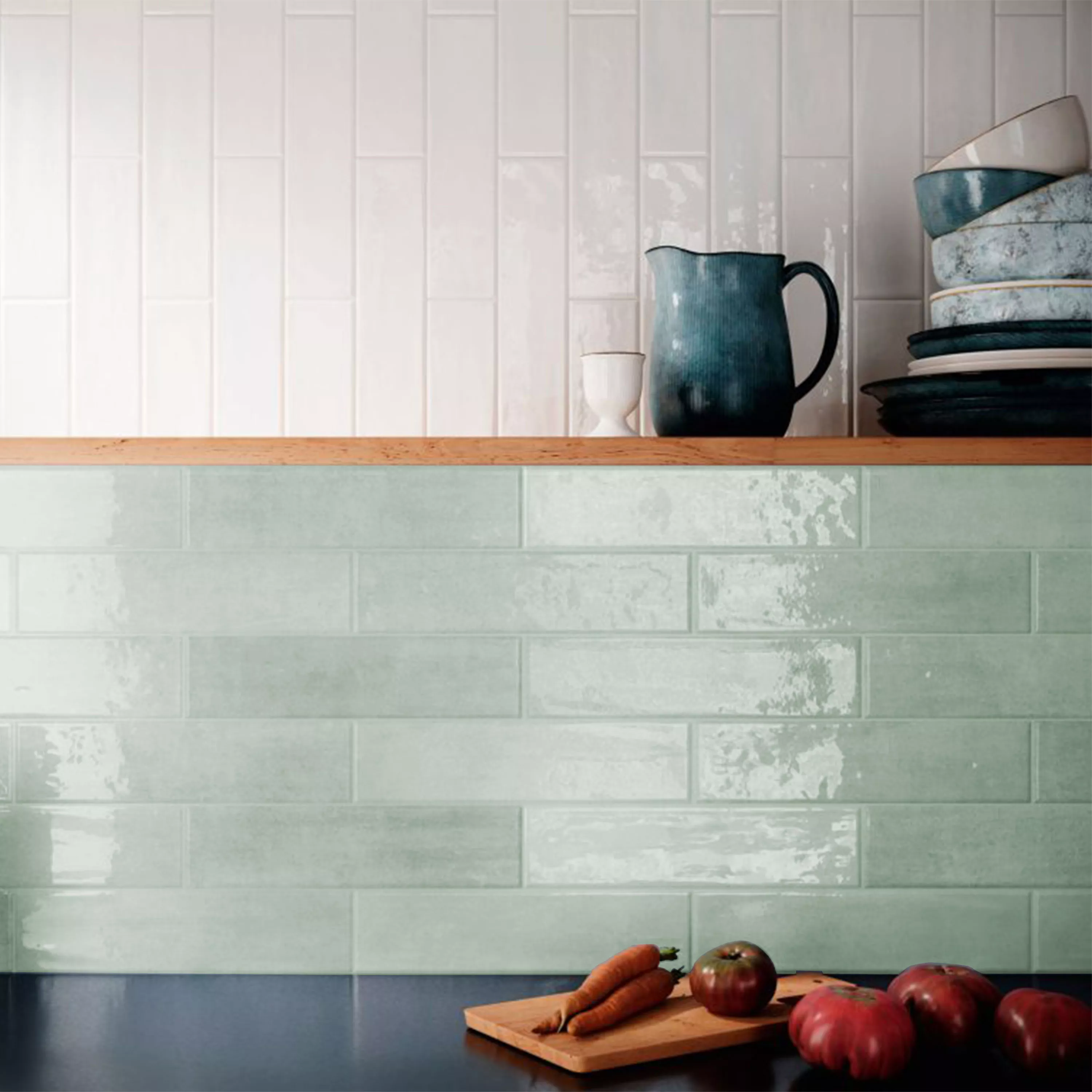 Δώστε στους τοίχους σας μια φρέσκια πινελιά φύσης με τα πλακάκια τοίχου Tropea σε γυαλιστερή πράσινη και κυματιστή δομή. Αυτά τα εφυαλωμένα ορθογώνια πλακάκια διαστάσεων 7,5x30cm και πάχους 8,4mm φέρνουν μια vintage αισθητική στο σπίτι σας. Η κυματιστή, γυαλιστερή επιφάνεια δίνει στα δωμάτιά σας μια διακριτική δυναμική και δημιουργεί μια ζωντανή ατμόσφαιρα.