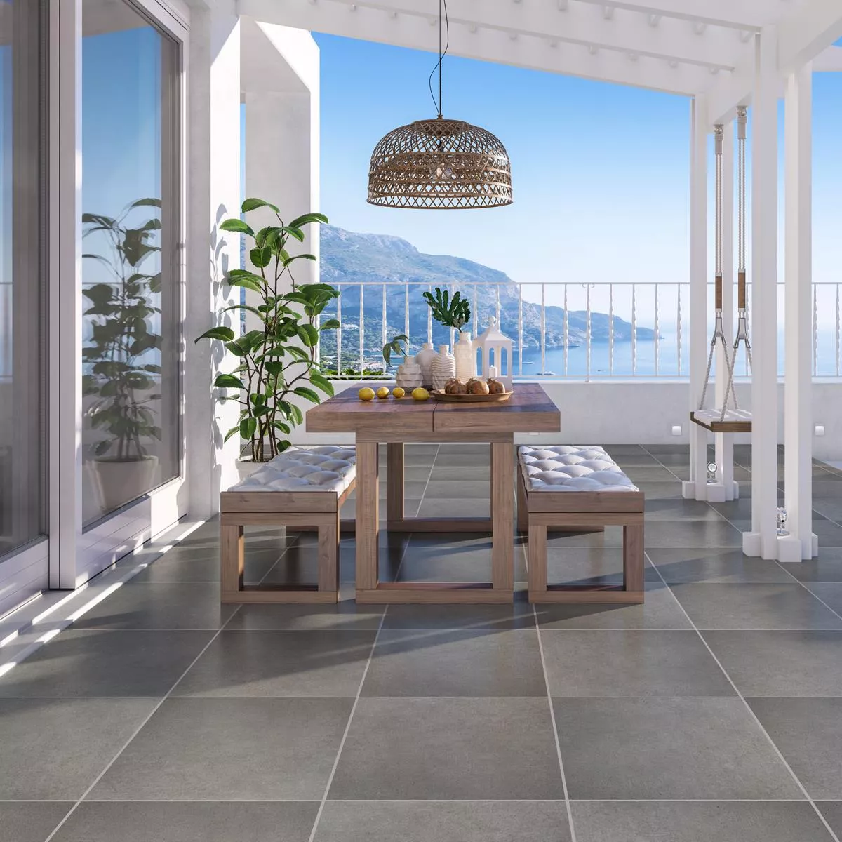 Συνολικά, τα πλακάκια βεράντας από πορσελάνη σε όψη σκυροδέματος Panama Dark Grey 60x60x2 cm προσφέρουν έναν τέλειο συνδυασμό μοντέρνου σχεδιασμού και υψηλής λειτουργικότητας. Οι αντιπαγετικές και αντιολισθητικές ιδιότητές τους καθώς και η καταλληλότητά τους για ενδοδαπέδια θέρμανση τα καθιστούν εξαιρετική επιλογή για ποικίλες εφαρμογές, τόσο σε εσωτερικούς όσο και σε εξωτερικούς χώρους.