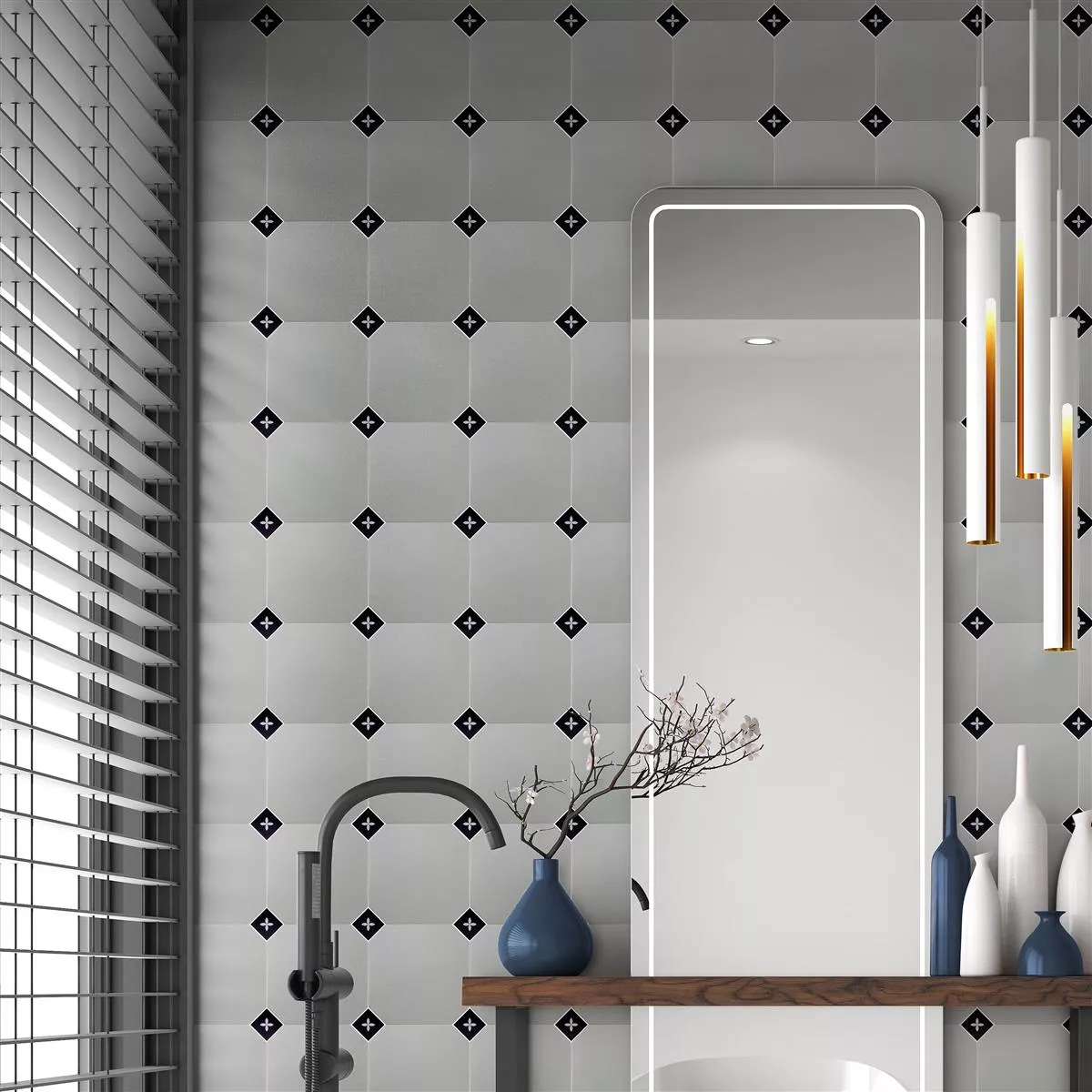Σχεδιάστε το σπίτι σας με στυλ και βασιστείτε στα πλακάκια από πορσελάνη Black White Decor 2 της Genexia για μια κομψή και μοντέρνα ατμόσφαιρα.