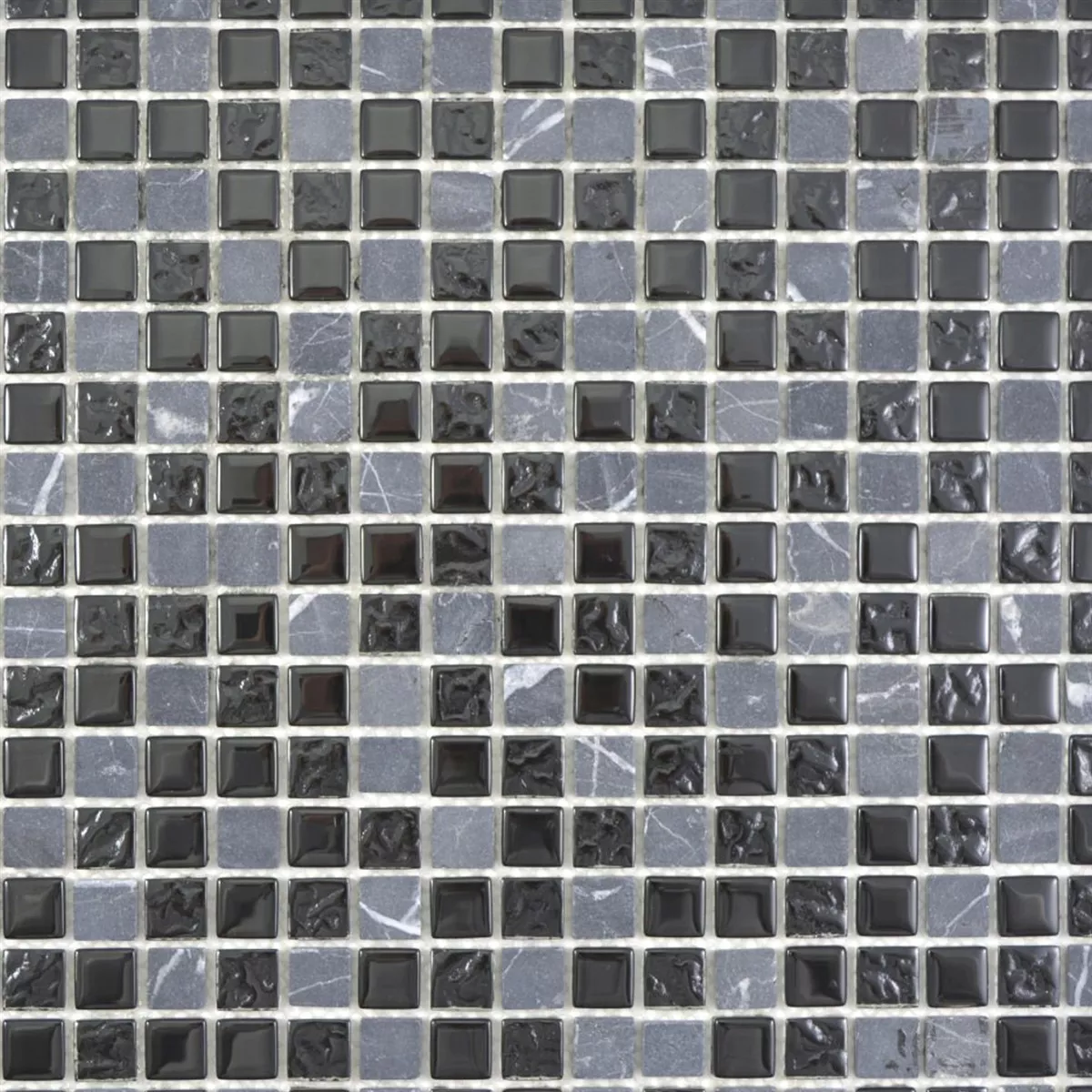 Τα γυάλινα πλακάκια μωσαϊκού από φυσική πέτρα Zekova στη χρωματική παραλλαγή μαύρο γκρι είναι κατασκευασμένα από εναλλασσόμενο μάρμαρο και γυαλί. Το γυάλινο μωσαϊκό πλακάκι από φυσική πέτρα Zekova έχει μέγεθος πέτρας 15 x 15 mm. Επιπλέον, οι πέτρες έχουν εναλλάξ ματ και γυαλιστερή επιφάνεια.