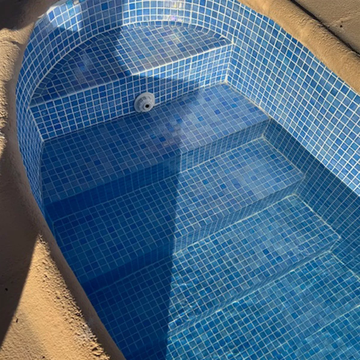 Με τη γυαλιστερή, μαργαριταρένια επιφάνεια του, το μωσαϊκό δίνει στην πισίνα ή την πισίνα μια ελκυστική εμφάνιση. Μπορεί επίσης να χρησιμοποιηθεί ως πλακάκι τοίχου ή πλακάκι δαπέδου σε άλλους υγρούς χώρους όπως ντους, μπάνια ή κουζίνες. Το μωσαϊκό είναι ανθεκτικό στον παγετό και μπορεί επίσης να χρησιμοποιηθεί σε ψυχρότερα κλίματα.