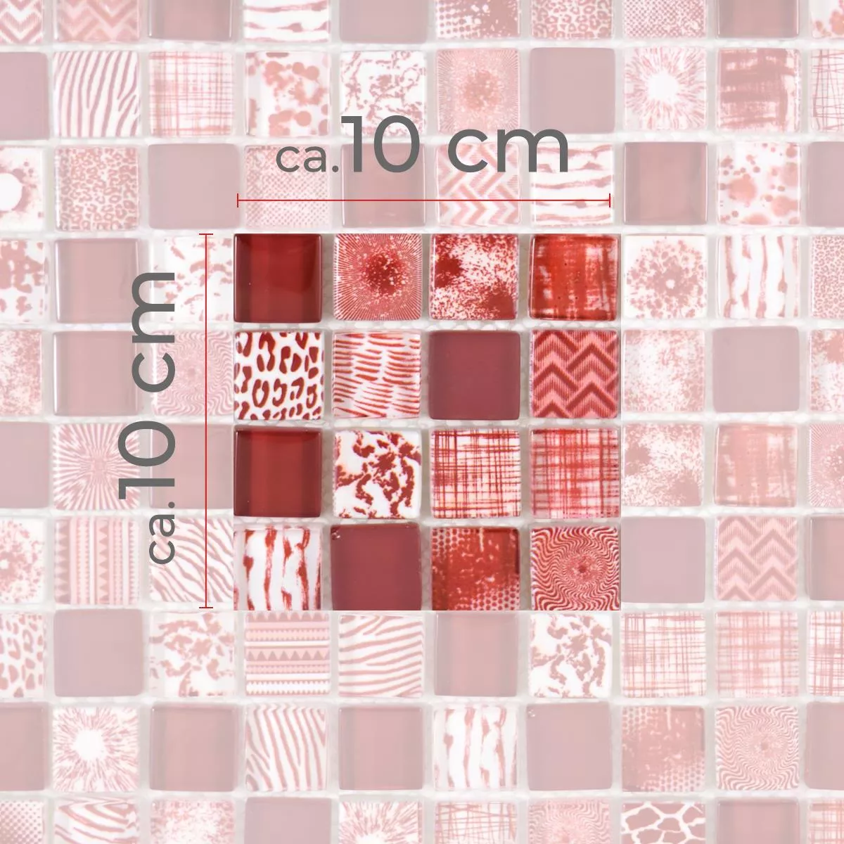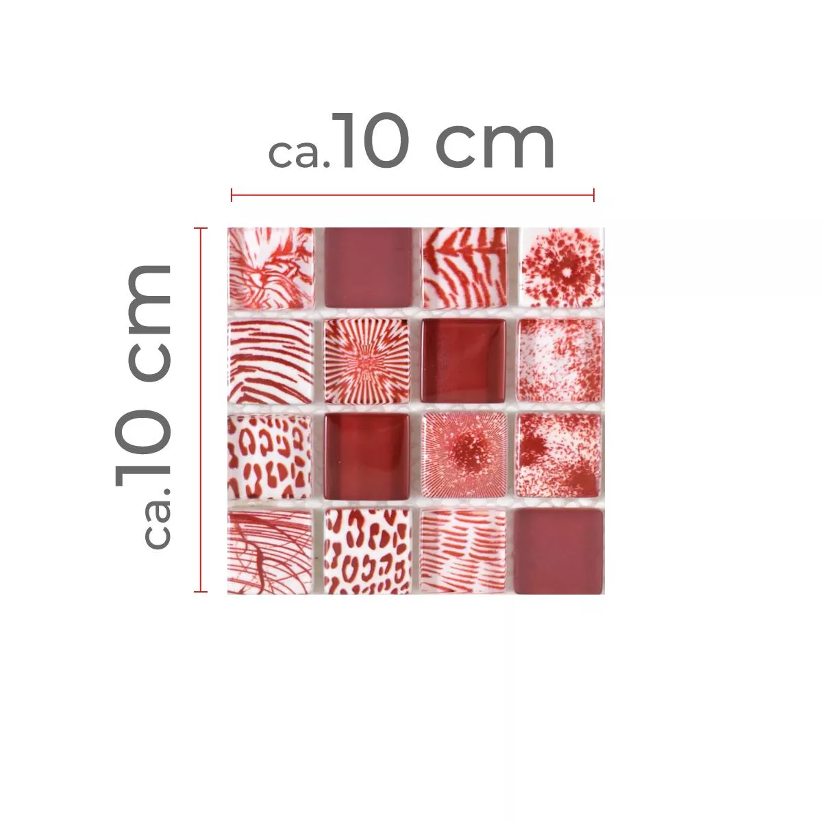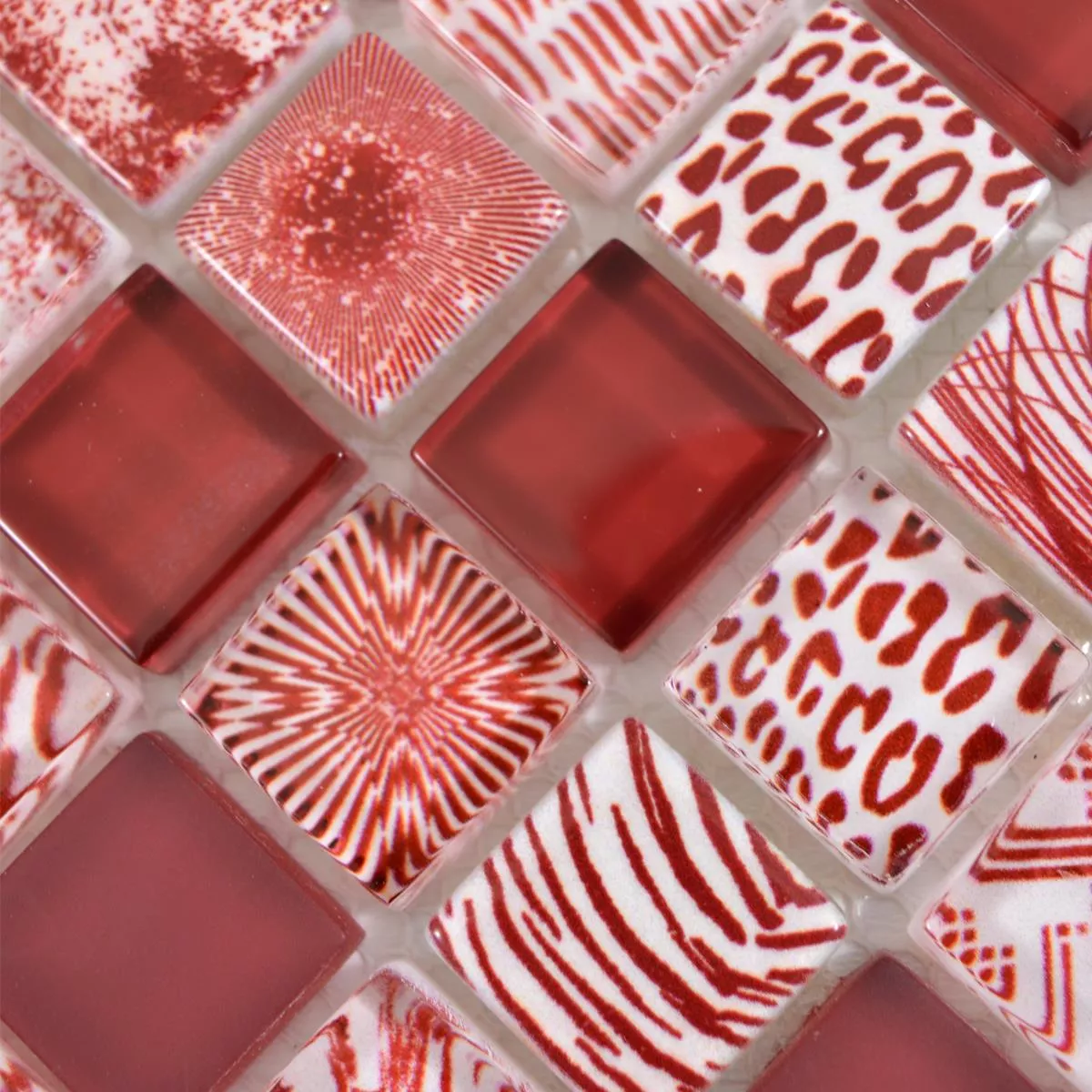 Πρότυπο από Γυάλινο Μωσαϊκό Πλακάκια Cornelia Ρετρό Oπτικά Kόκκινο