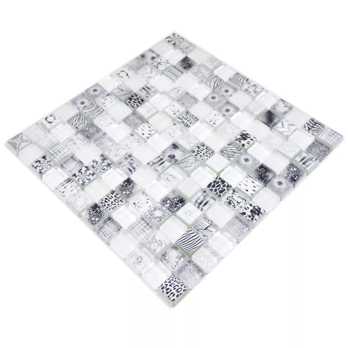 Πρότυπο από Γυάλινο Μωσαϊκό Πλακάκια Cornelia Ρετρό Oπτικά Σούπερ Ασπρο