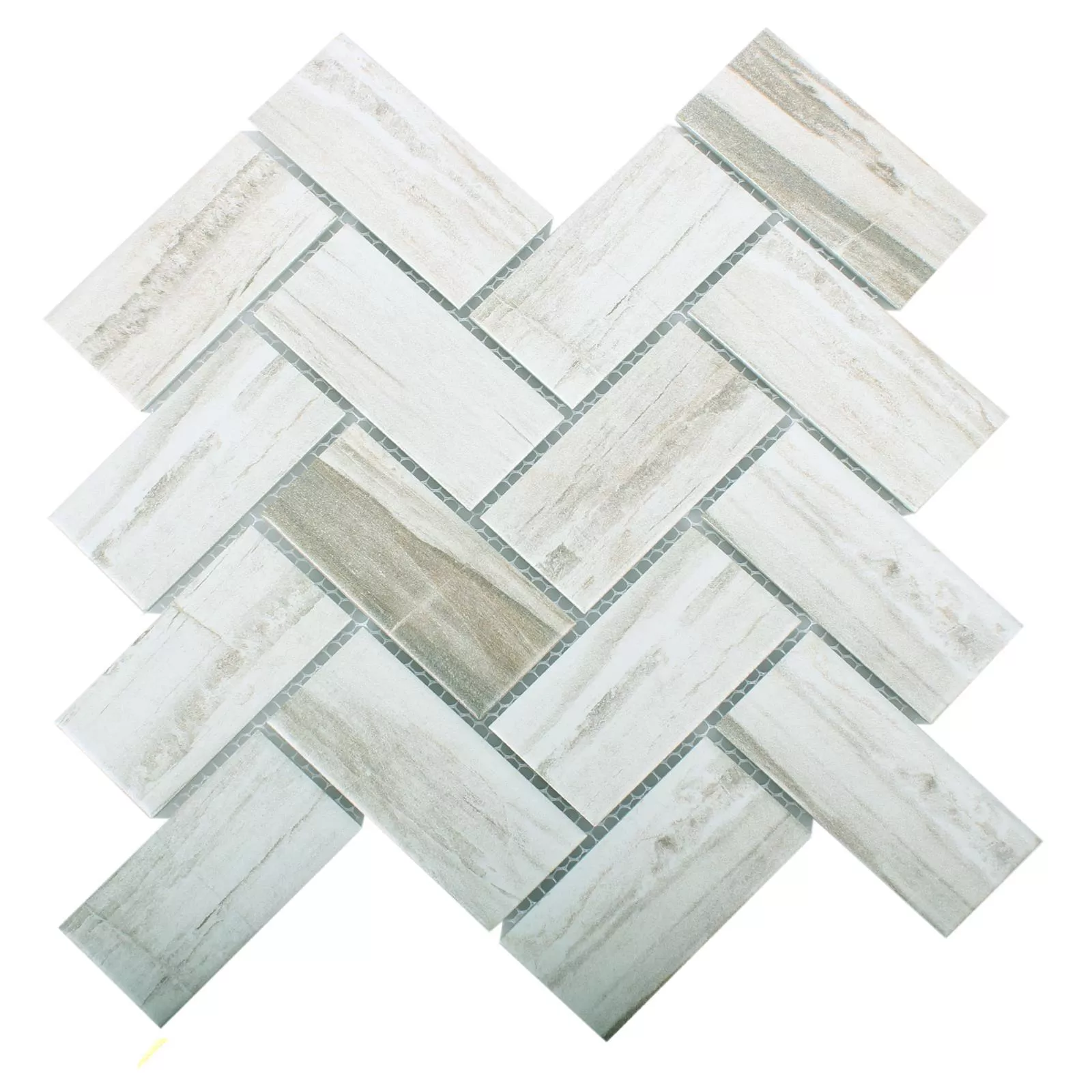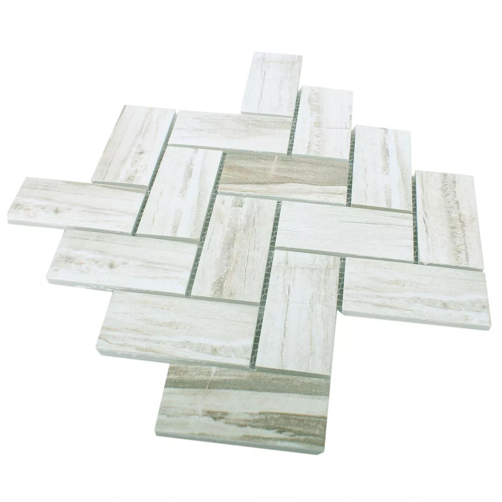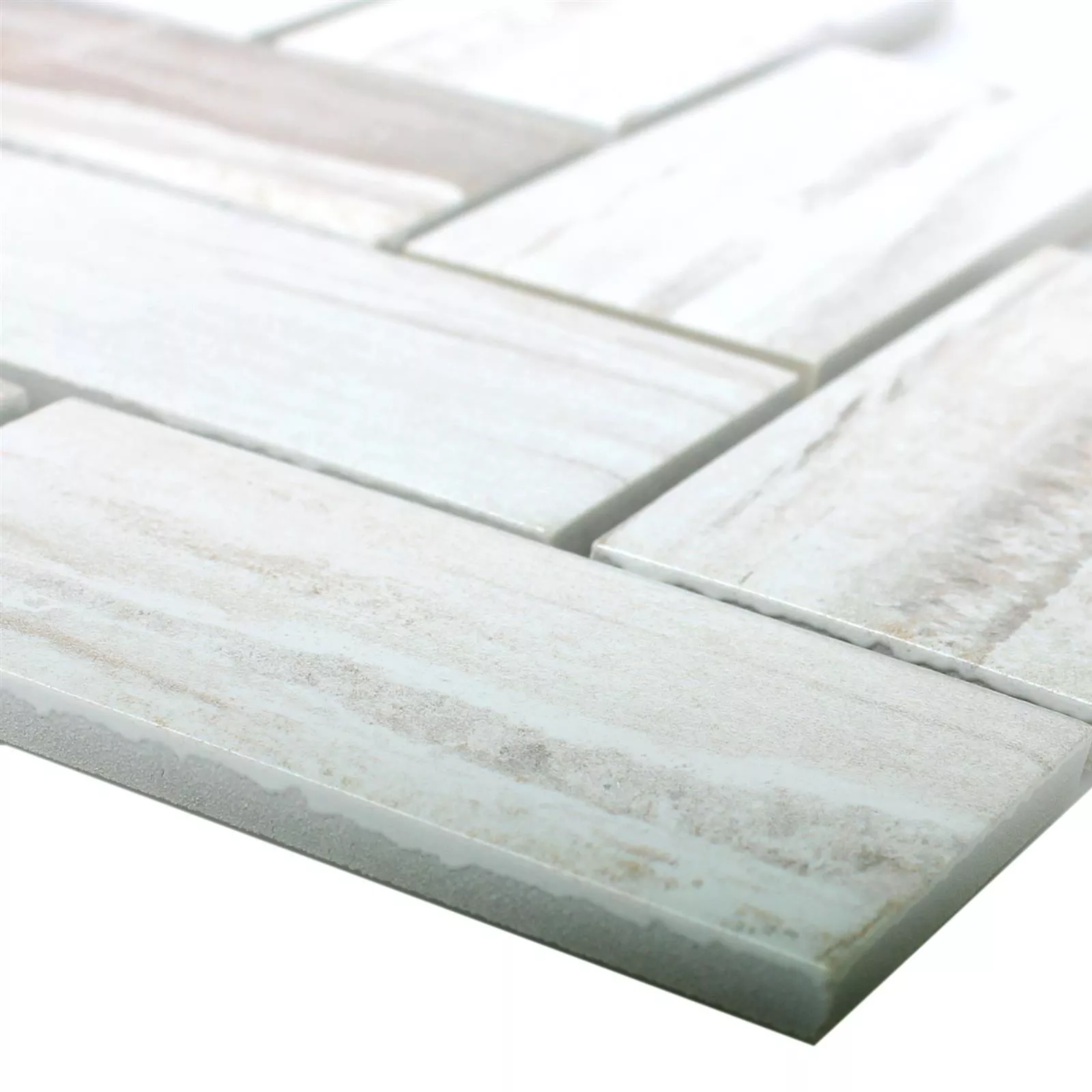 Πρότυπο από Kεραμικά Όψη Ξύλου Ψηφιδωτά Πλακάκια Norfolk Ψαροκόκκαλο Ασπρο