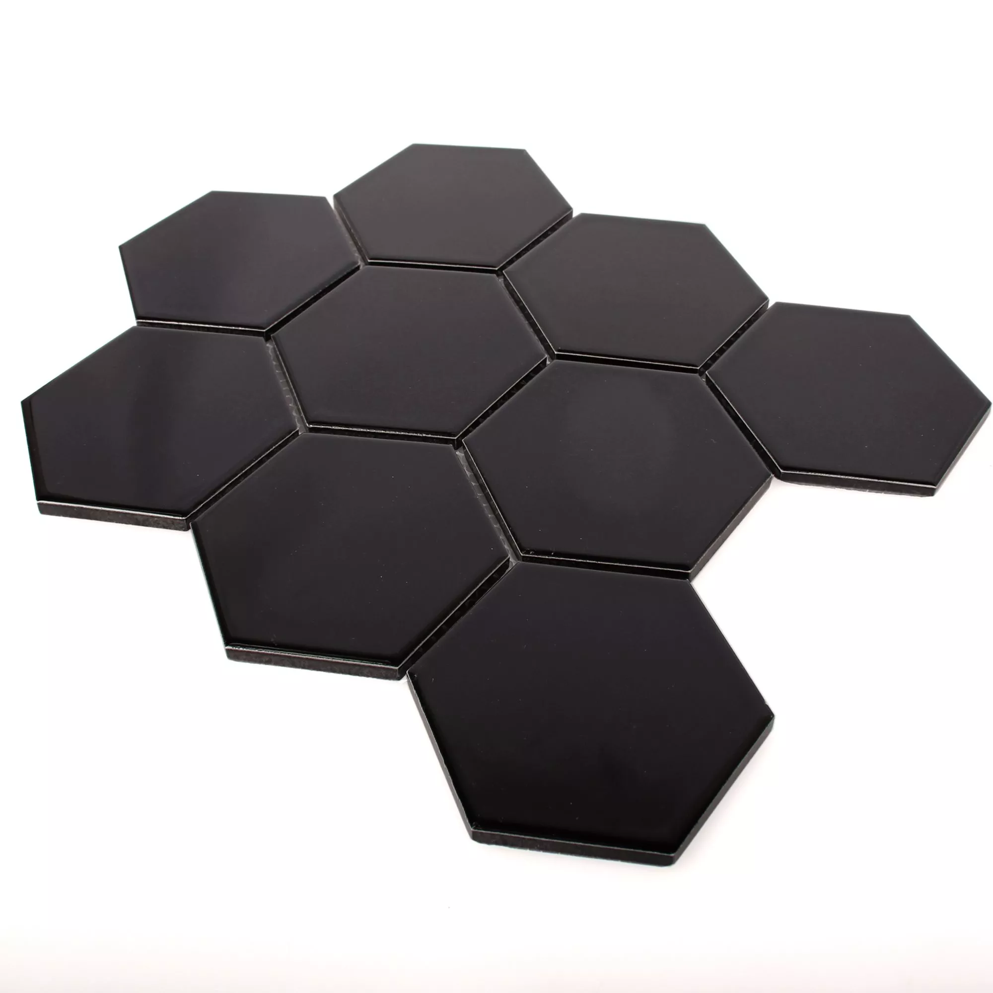 Πρότυπο από Kεραμικά Ψηφιδωτά Πλακάκια Εξάγωνο Salamanca Μαύρος Παγωμένος H95