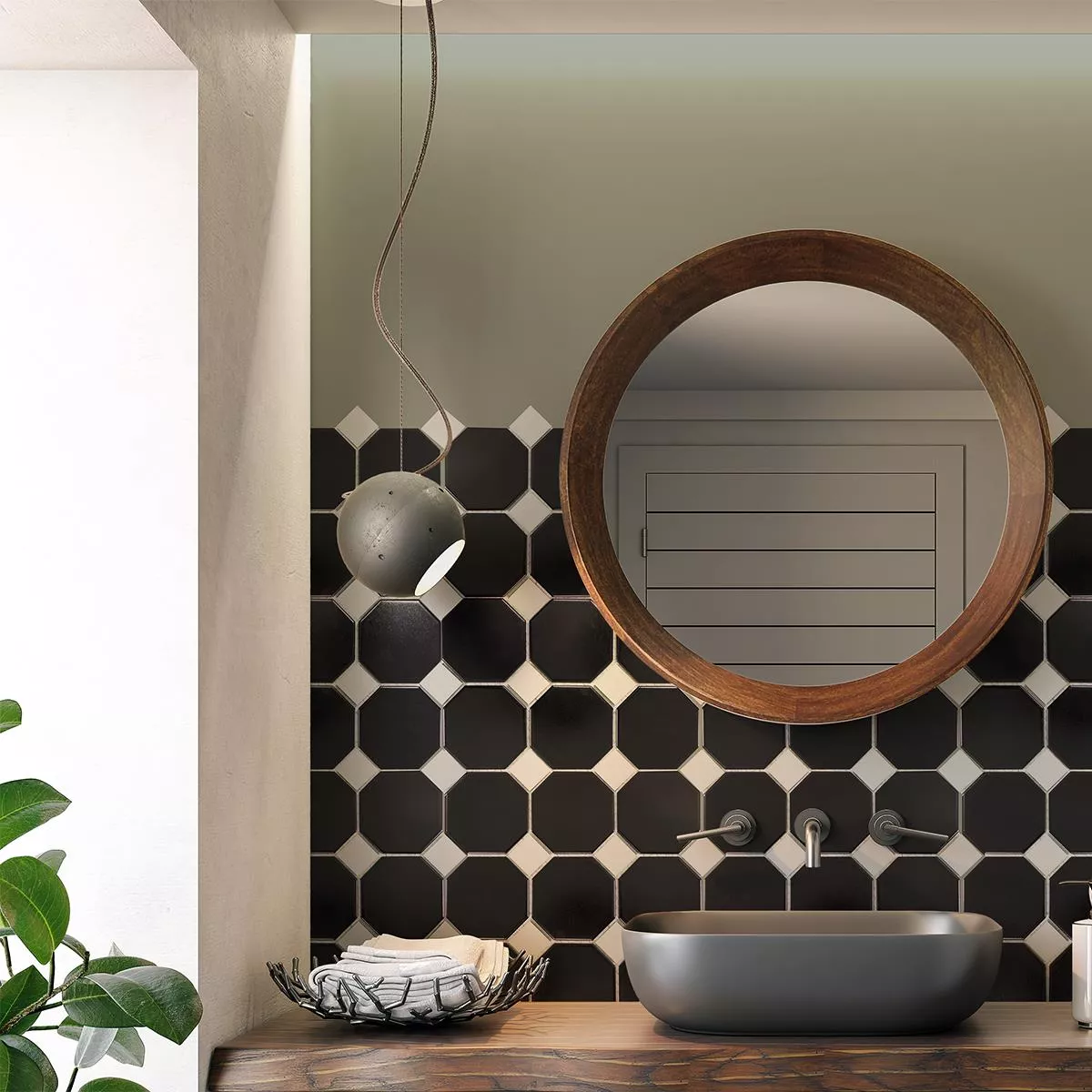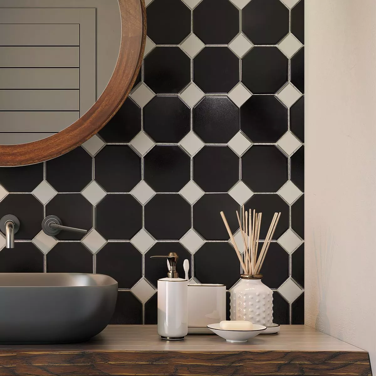 Πρότυπο από Kεραμικά Ψηφιδωτά Πλακάκια Οκτάγωνο Fürstenberg Μαύρος Ασπρο