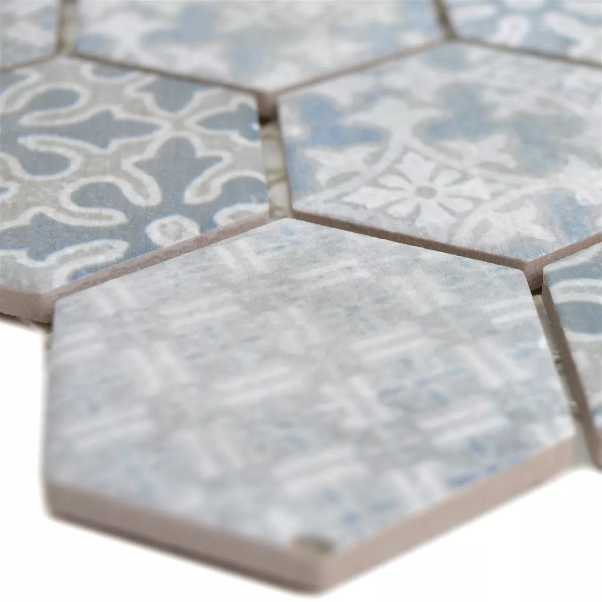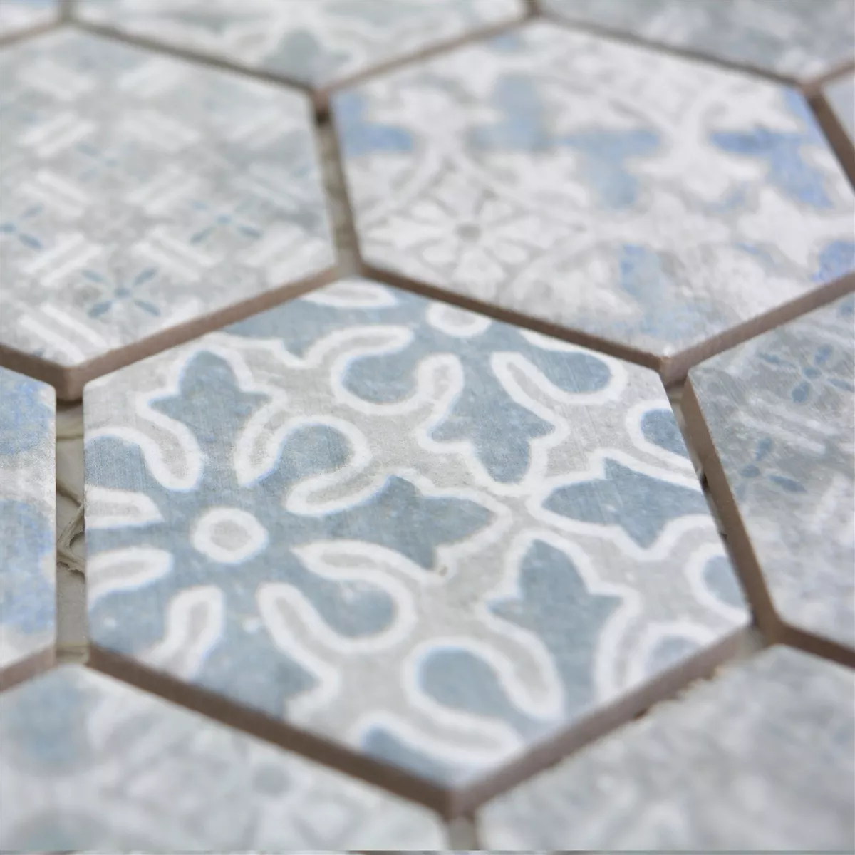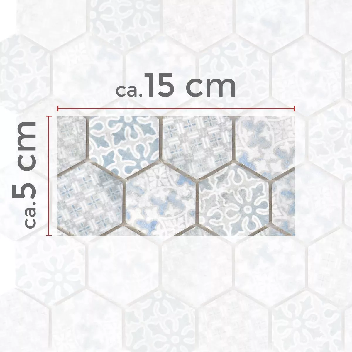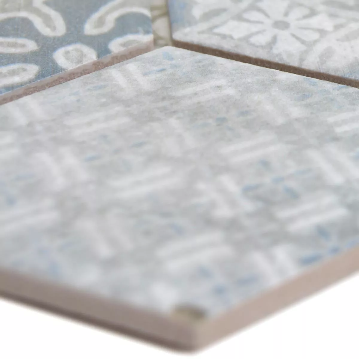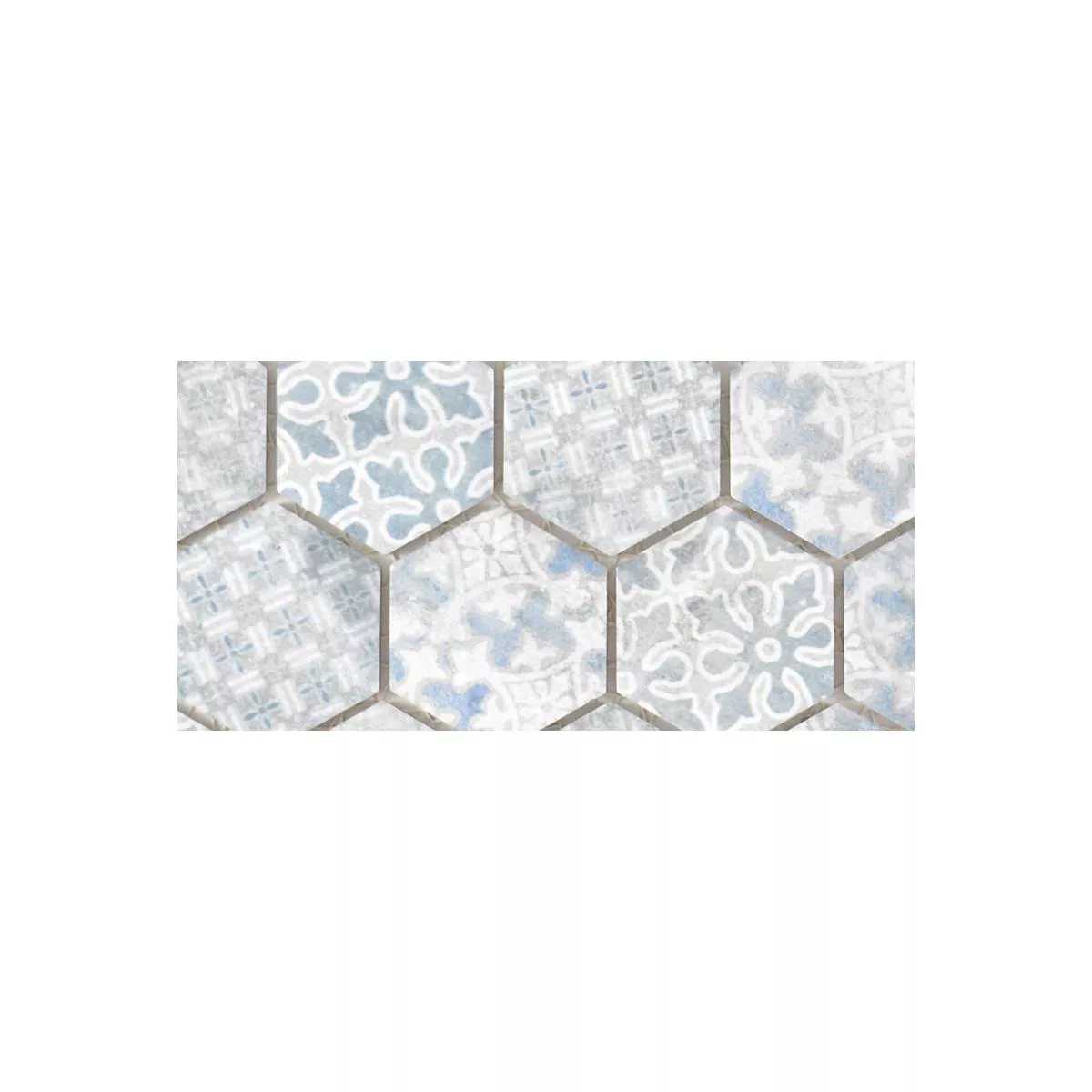 Πρότυπο από Kεραμικό Mωσαϊκό Retro Πλακάκια Lawinia Εξάγωνο Μπλε