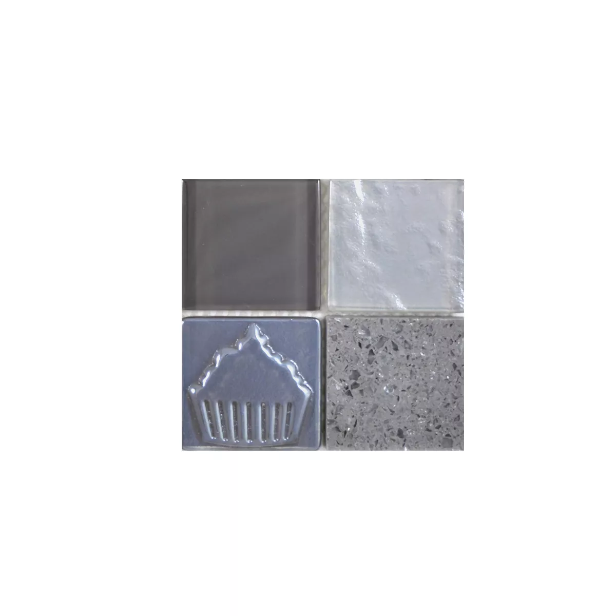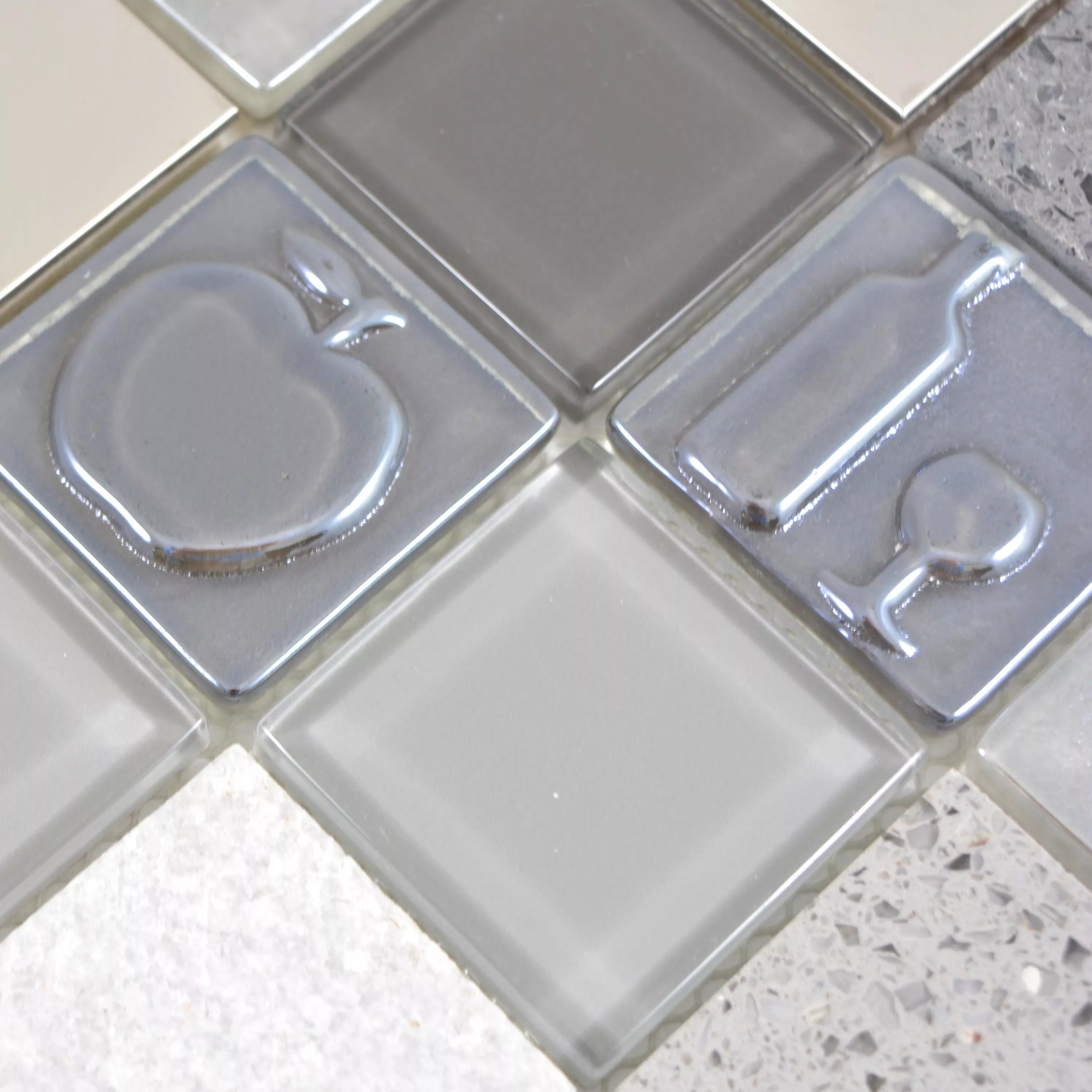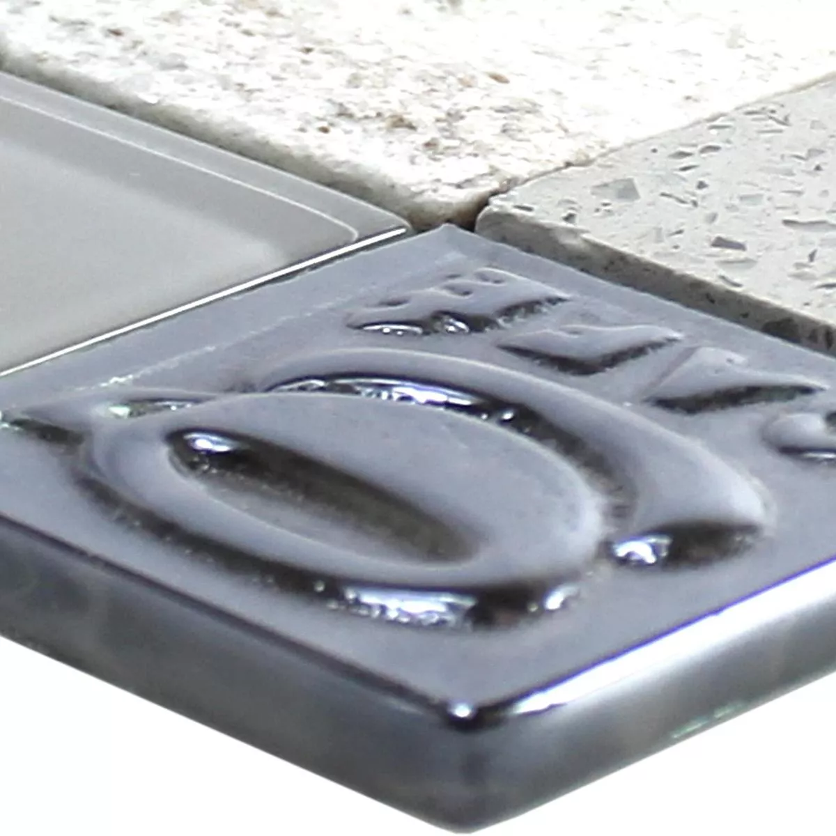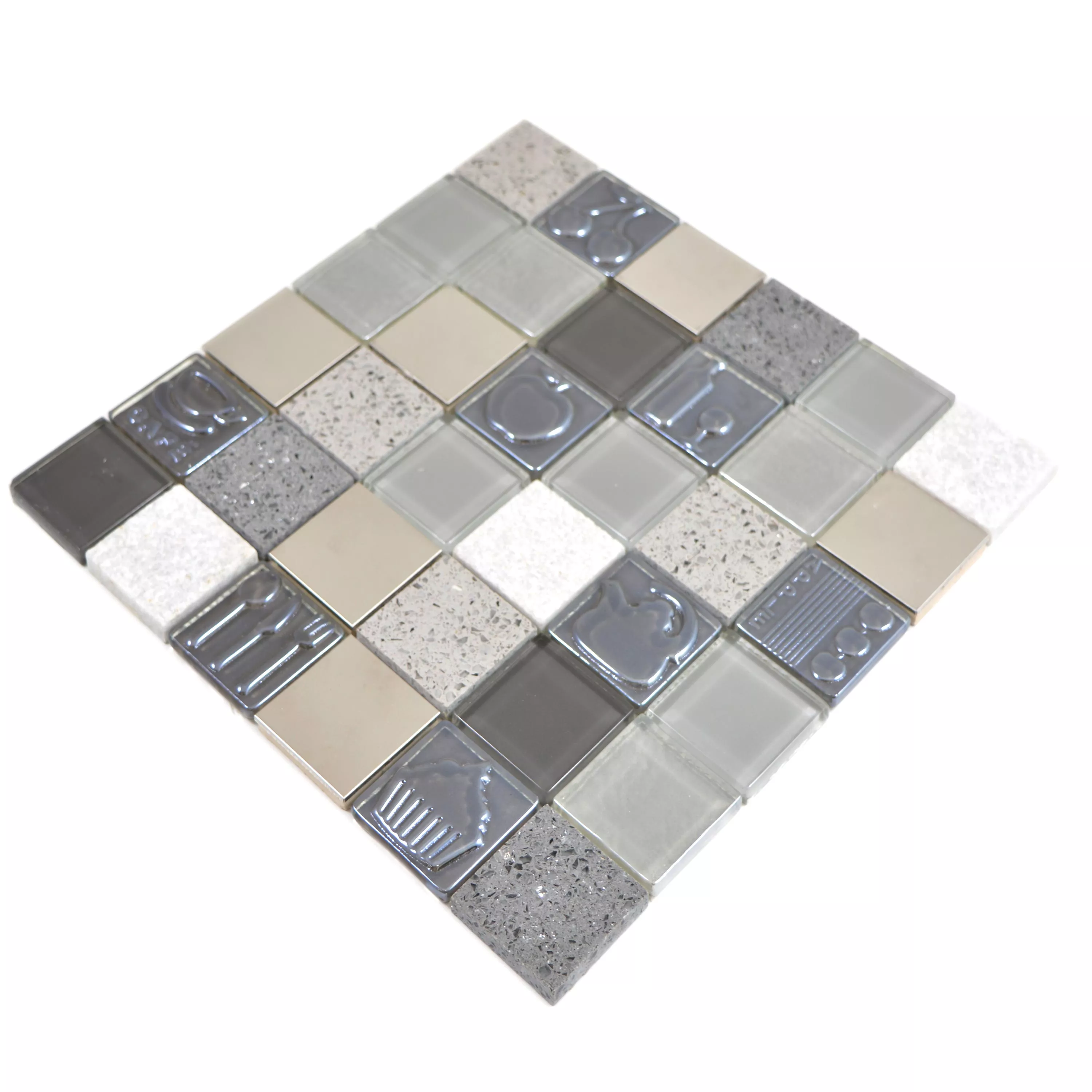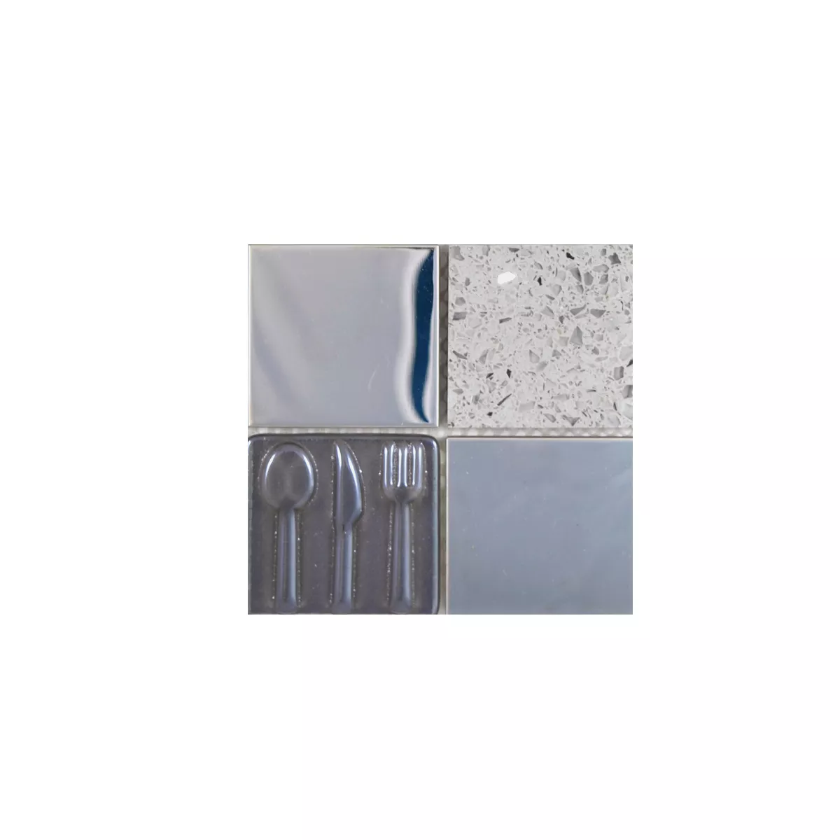 Πρότυπο από Ποτήρι Ανοξείδωτο Aτσάλι Φυσική Πέτρα Ψηφιδωτά Πλακάκια Emporia Γκρί Ασήμι