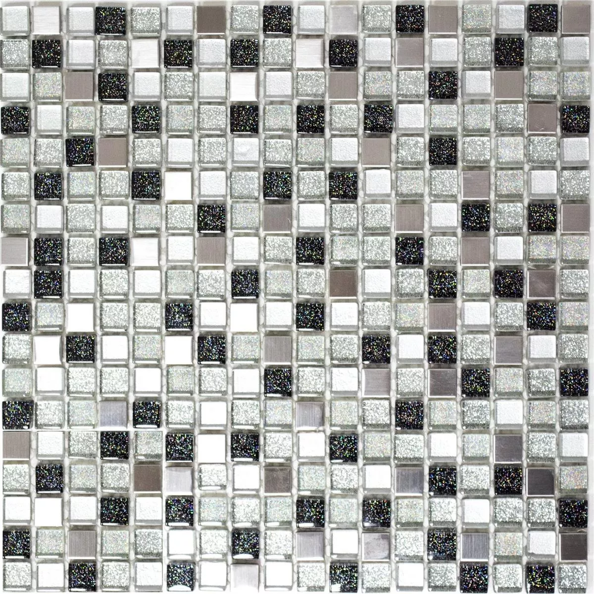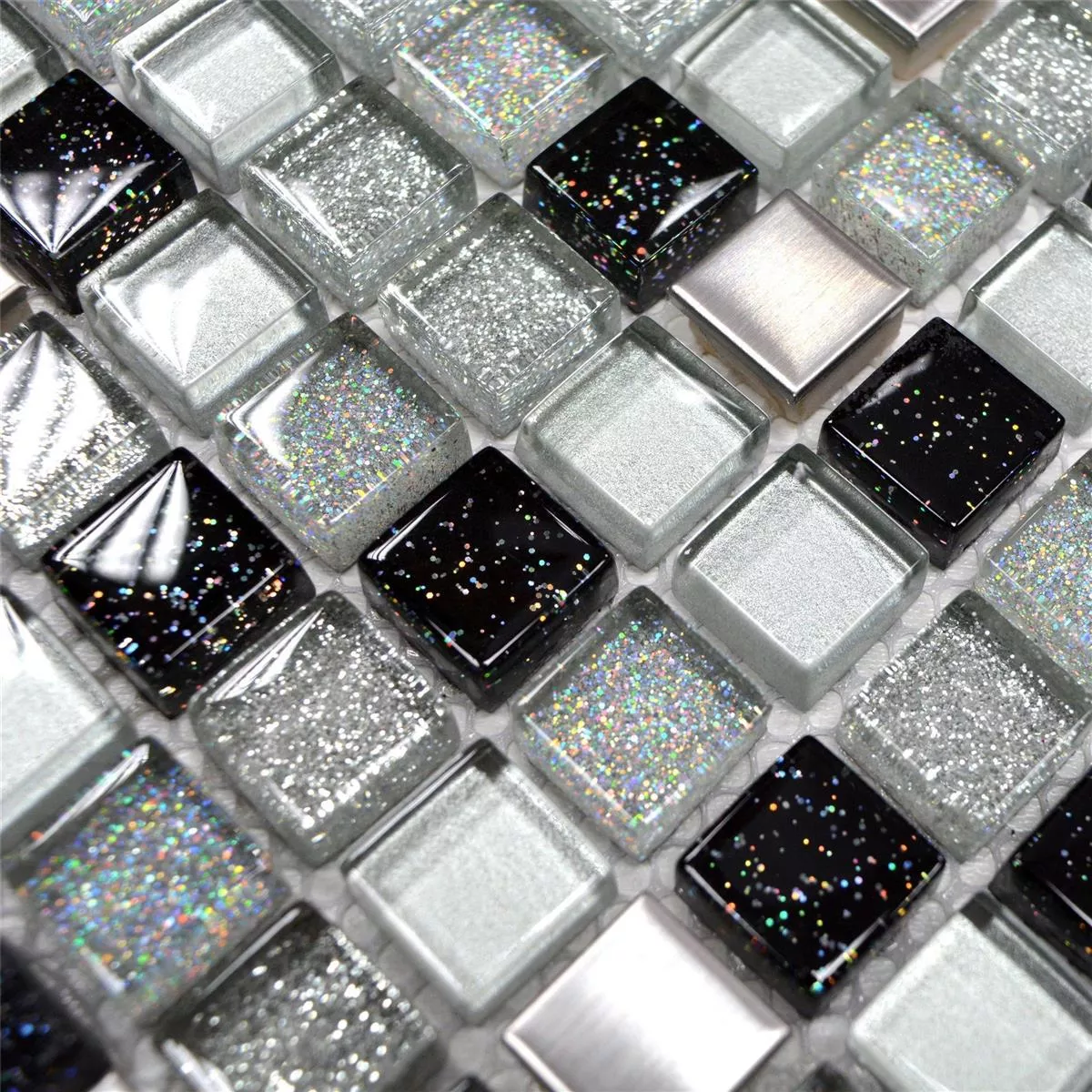 Πρότυπο από Ποτήρι Ανοξείδωτο Aτσάλι Mέταλλο Ψηφιδωτά Πλακάκια Ασήμι Μαύρος