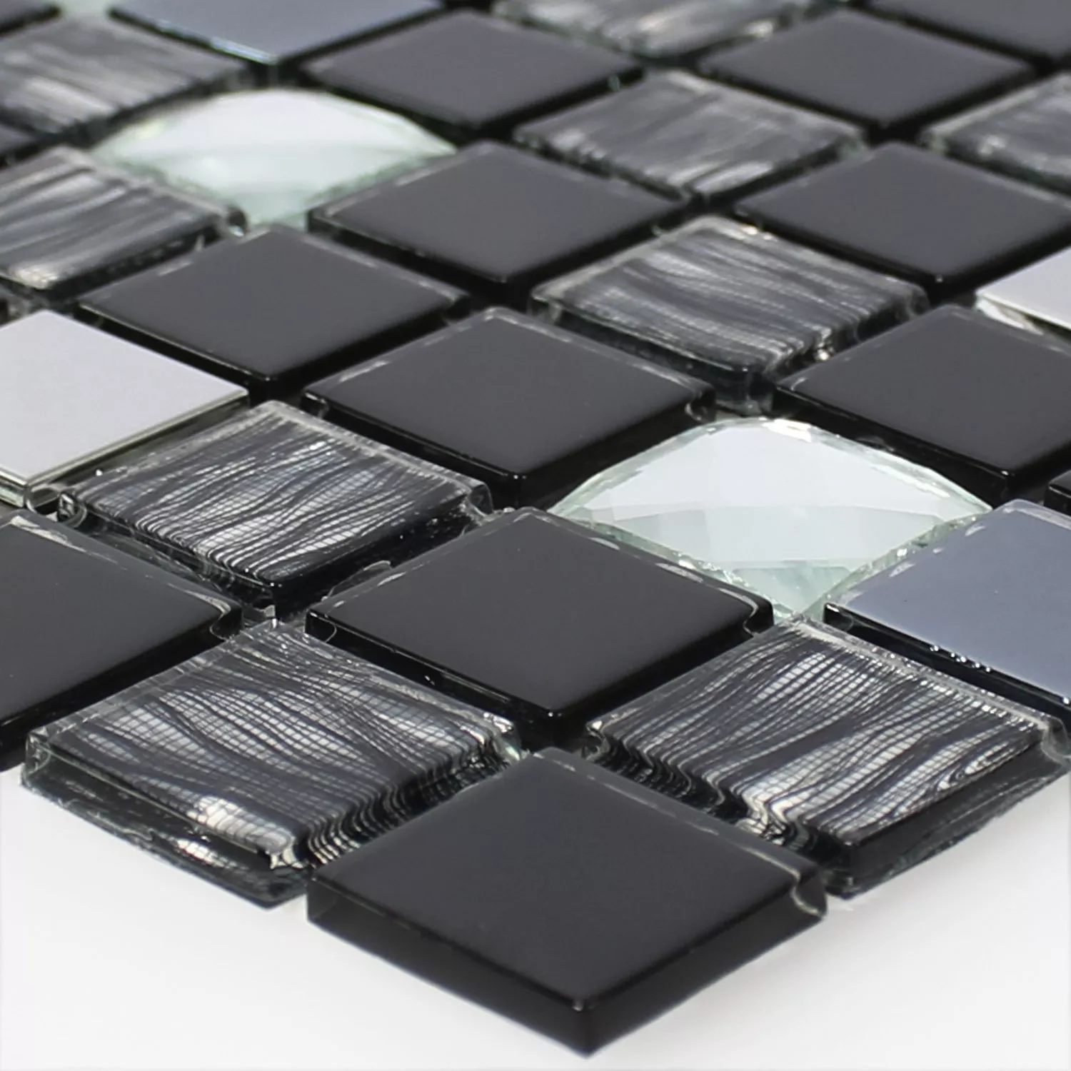Πρότυπο από Ποτήρι Ανοξείδωτο Aτσάλι Μωσαϊκό Amasya Aυτοκόλλητες Μαύρος Ασήμι