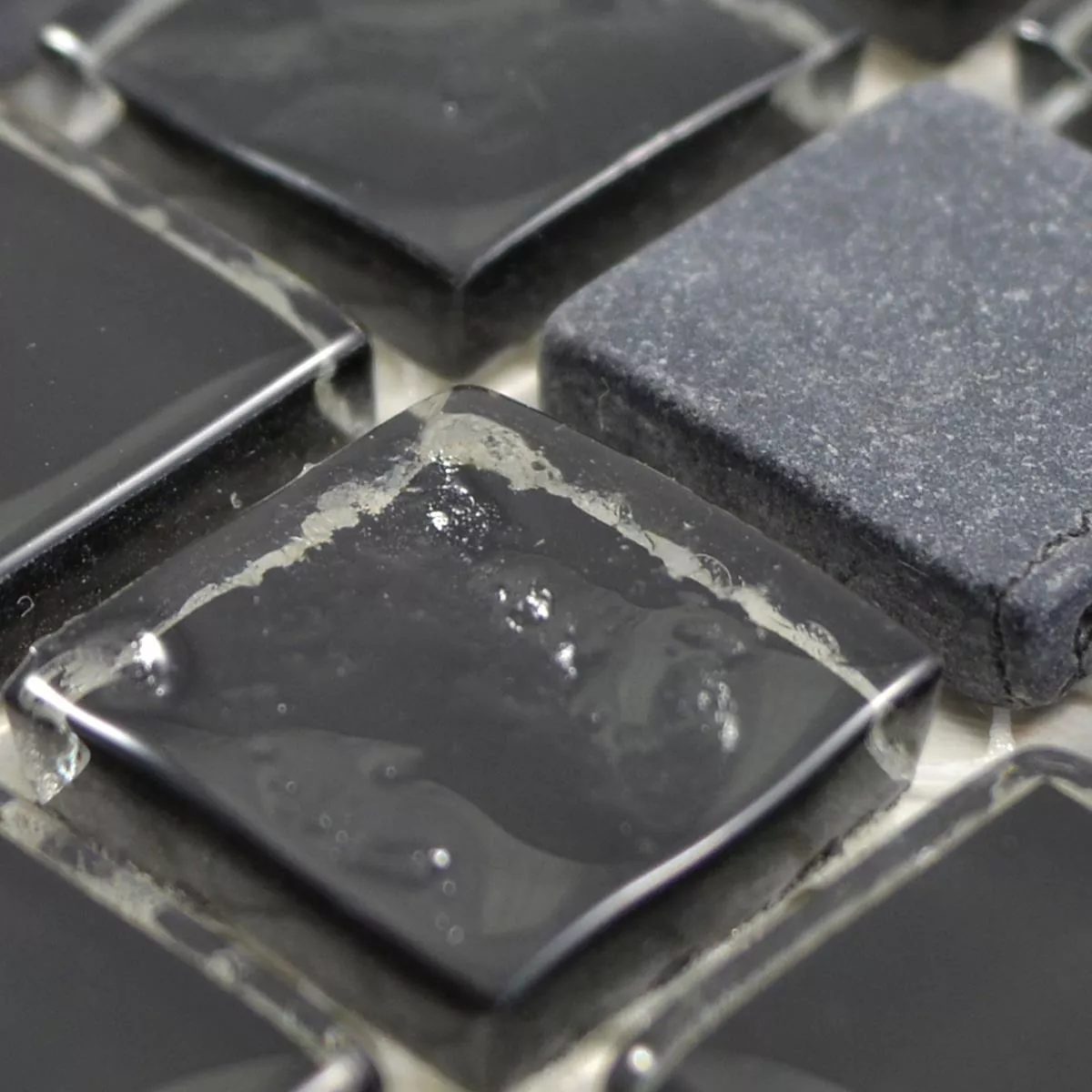 Πρότυπο από Ποτήρι Φυσική Πέτρα Ψηφιδωτά Πλακάκια Zekova Μαύρος Γκρί