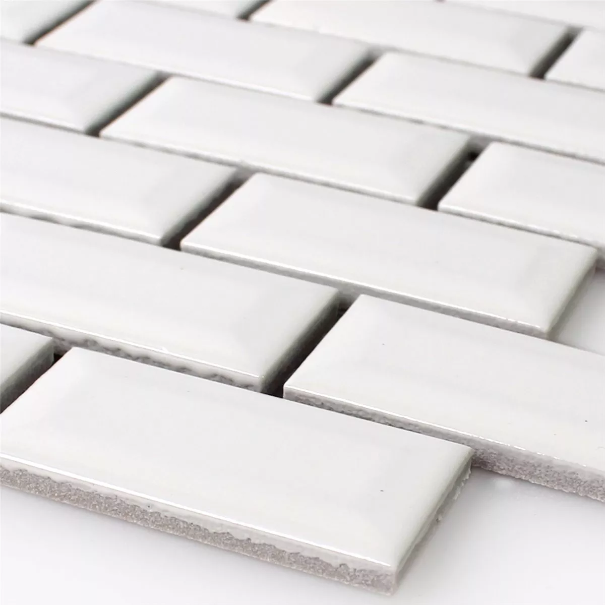 Πρότυπο από Ψηφιδωτά Πλακάκια Kεραμικά Metro Όψη Ασπρο Αστραφτερό