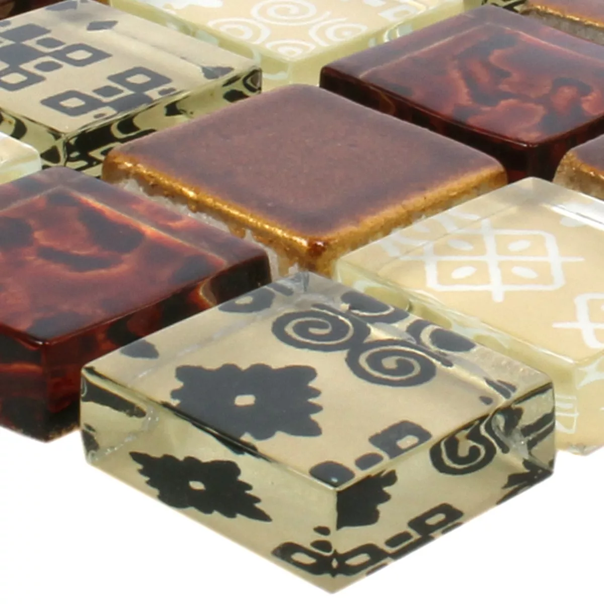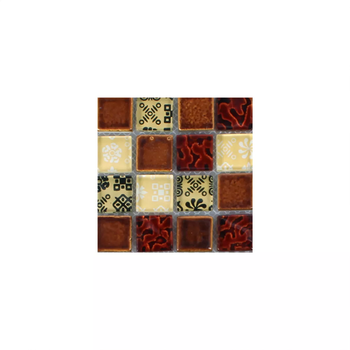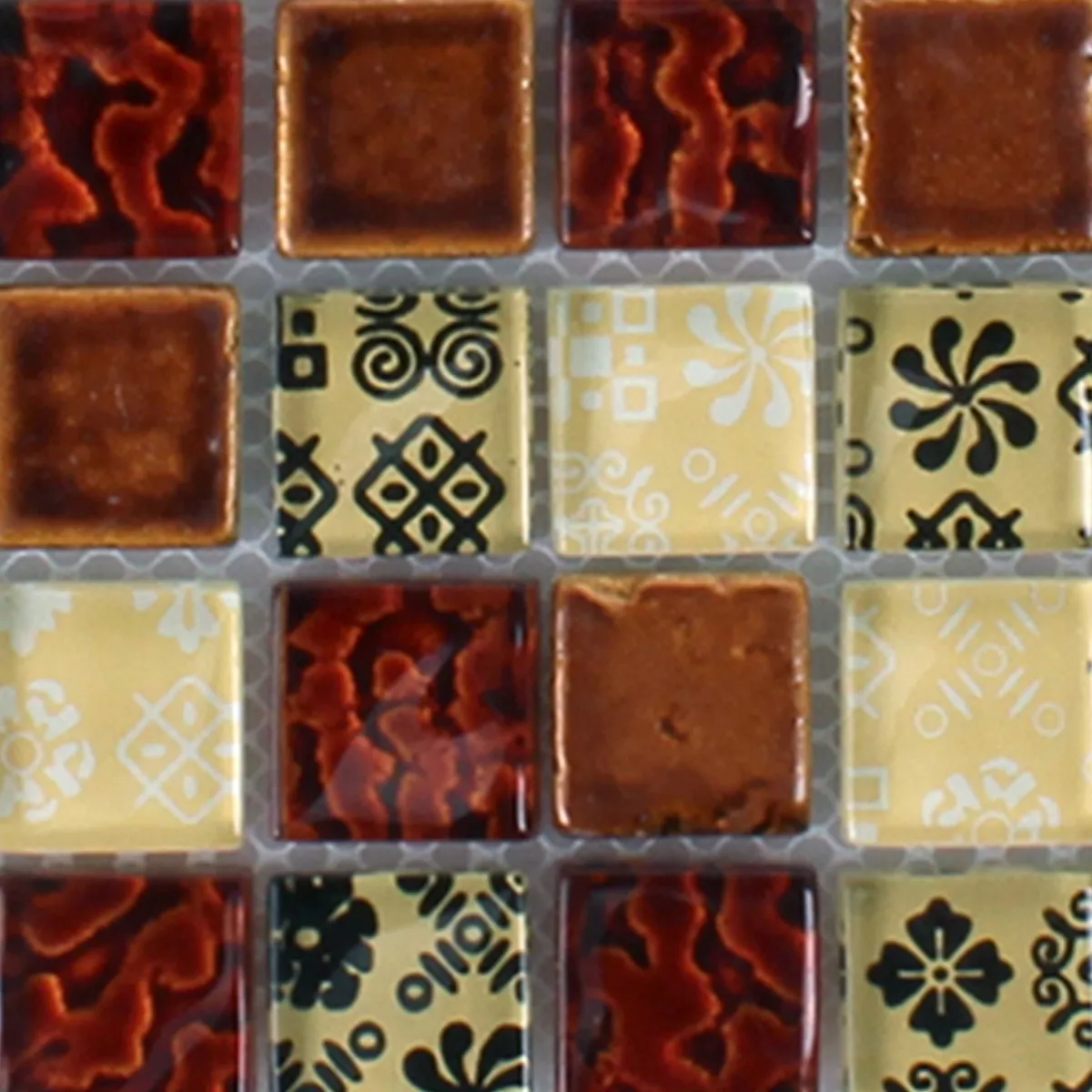 Πρότυπο από Ψηφιδωτά Πλακάκια Ρητίνη Ποτήρι Belmont Kόκκινο Μπεζ
