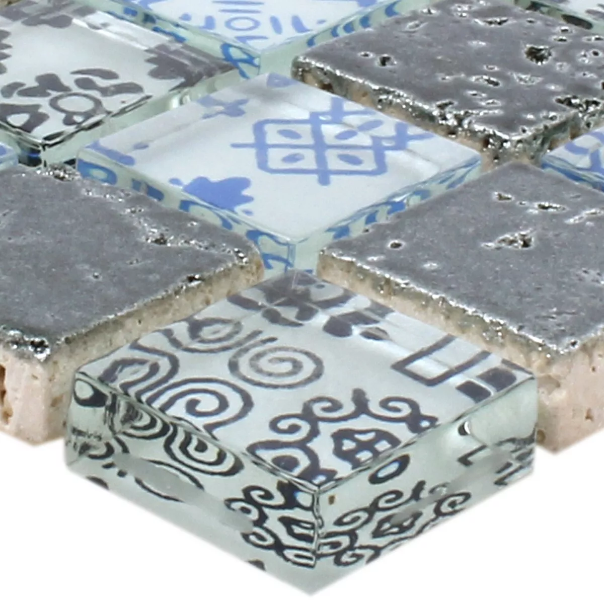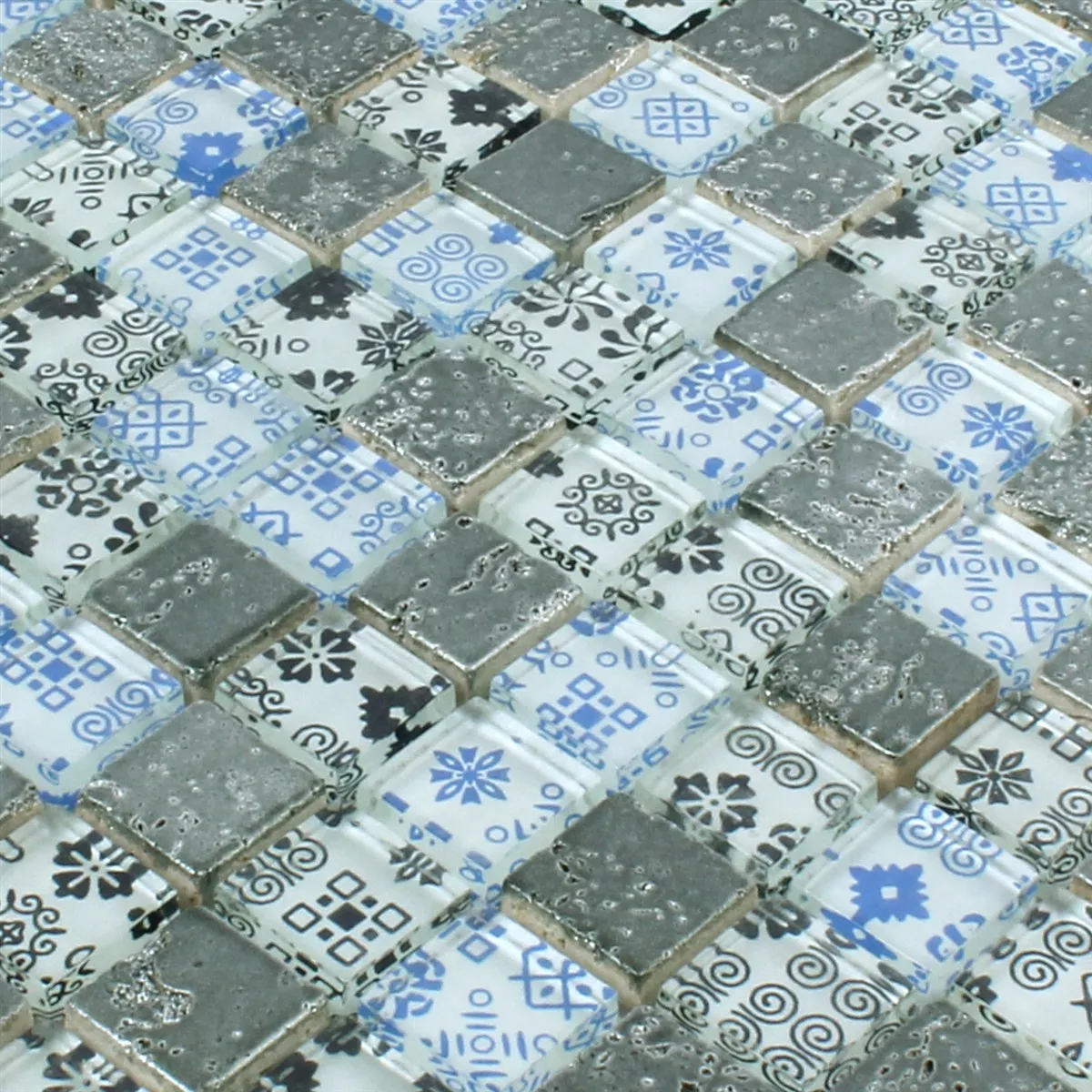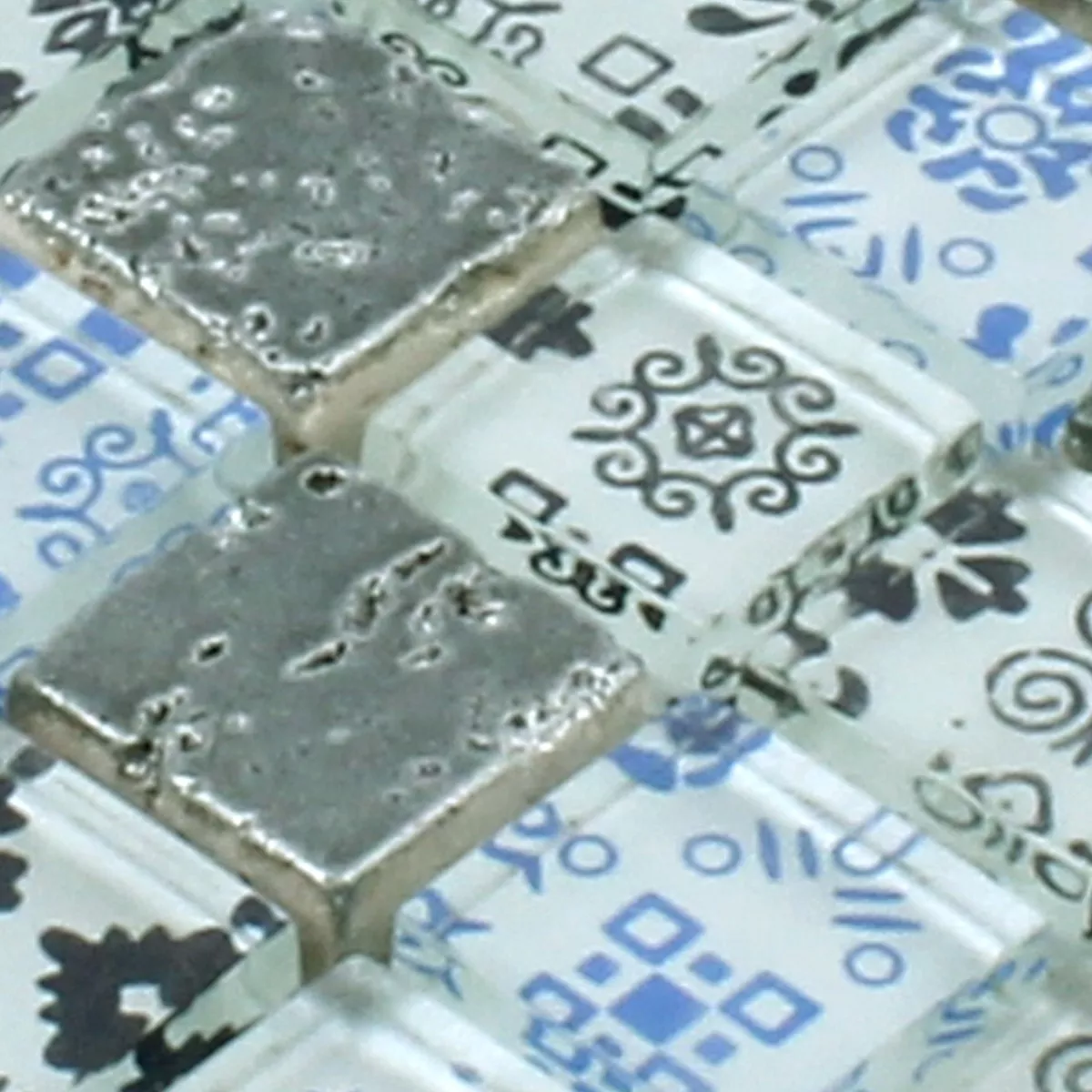 Πρότυπο από Ψηφιδωτά Πλακάκια Ρητίνη Ποτήρι Belmont Μπλε Ασήμι