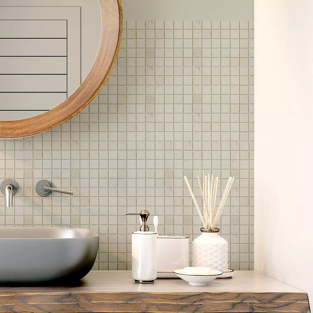 Κάθε πλακίδιο και κάθε ψηφίδα έχει διαφορετικές απαιτήσεις για κοπή, τοποθέτηση και επεξεργασία λόγω των ιδιοτήτων του υλικού και των συνθηκών χρήσης. Παρακαλούμε ρωτήστε έναν τοπικό ειδικό για τη σωστή και ασφαλή τοποθέτηση των ψηφίδων ή πλακιδίων σας. Δεν φέρουμε ευθύνη για μη επαγγελματική χρήση και κακή εκτέλεση των κατασκευαστικών υλικών.