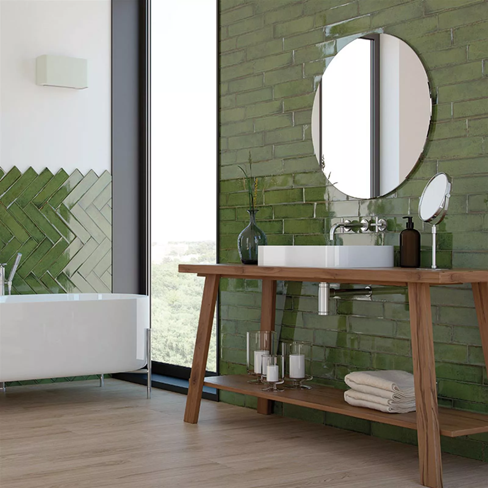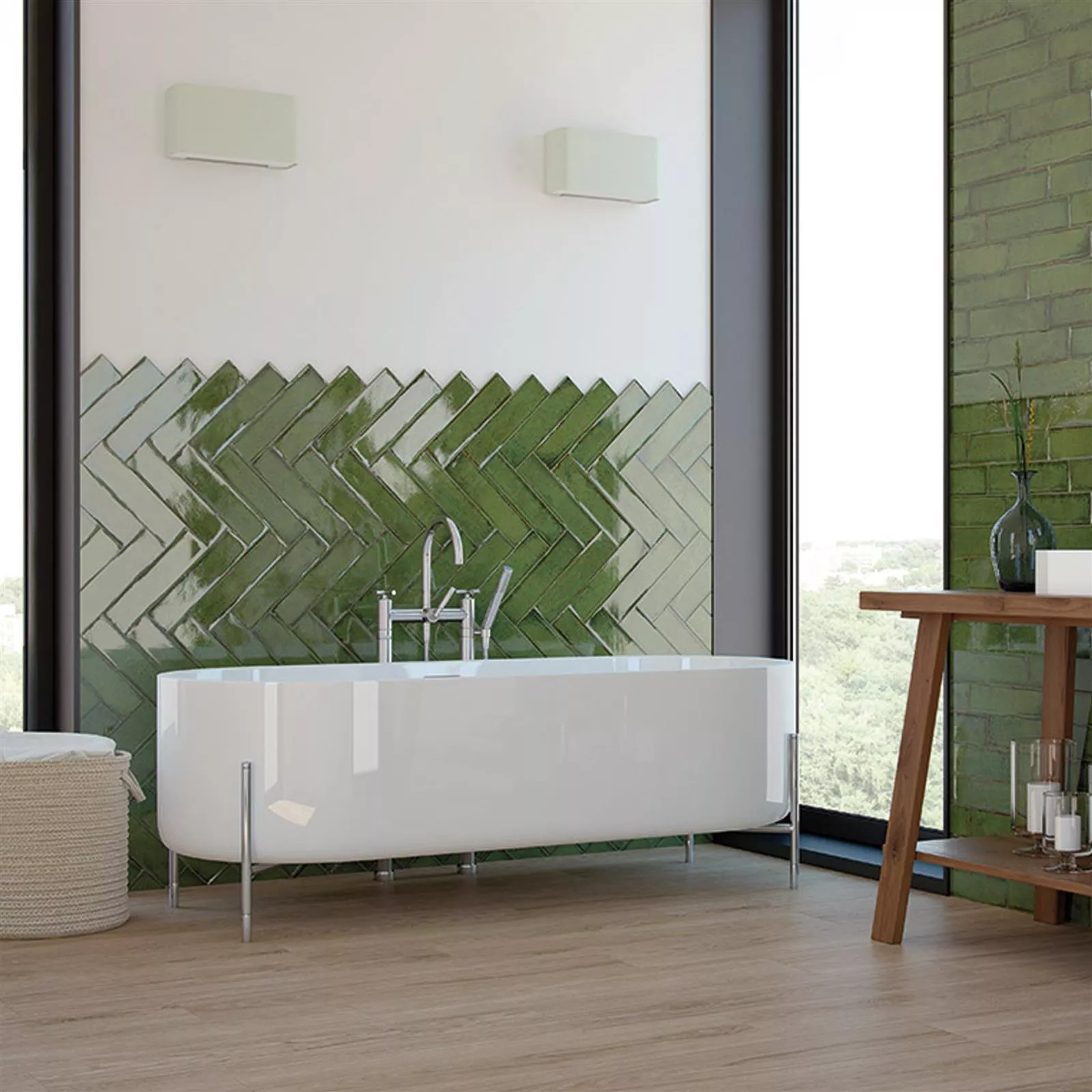 Πρότυπο Πλακάκια Tοίχου Maestro Kυματιστός Αστραφτερό Ελαιοπράσινο 7,5x30cm