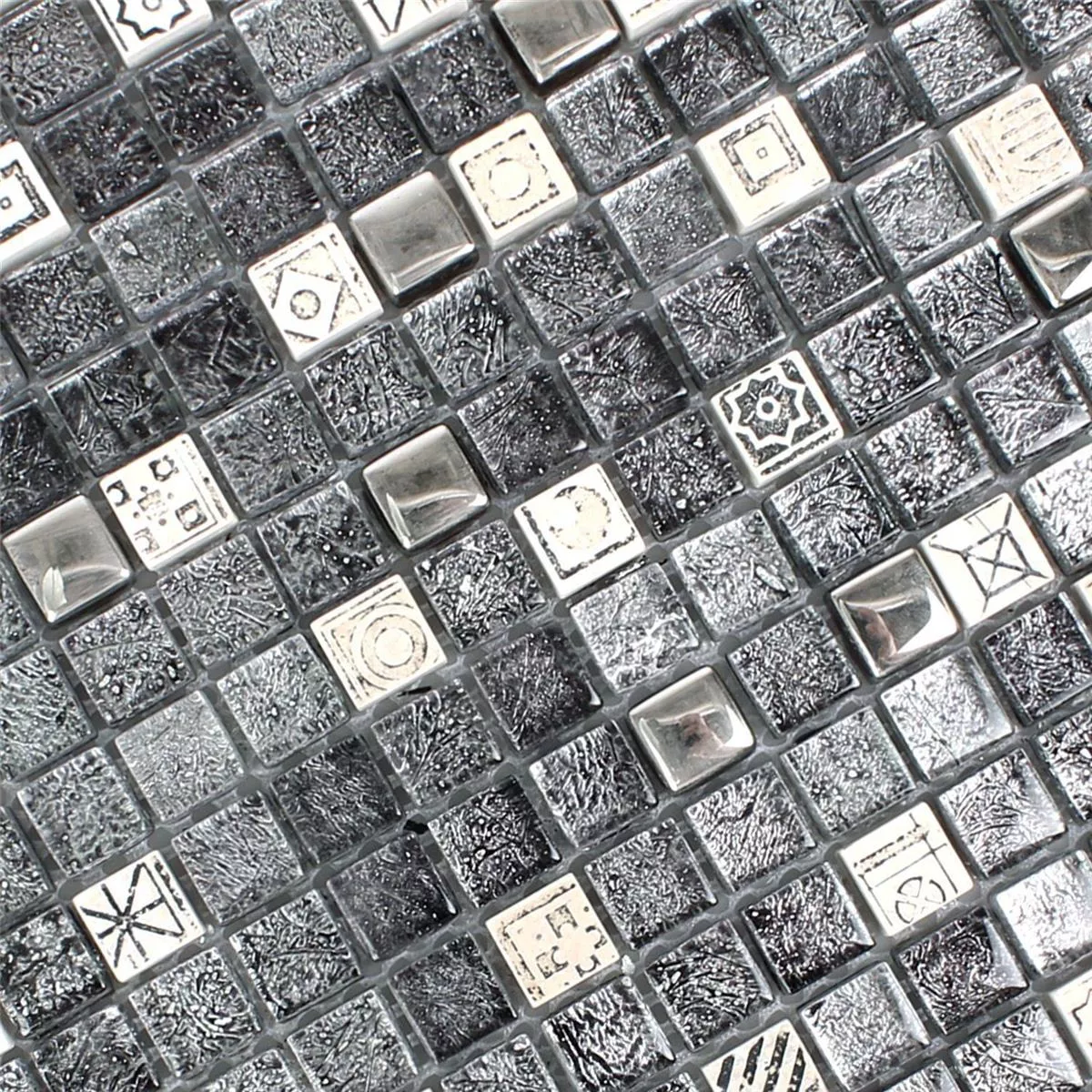 Ο λεπτομερής σχεδιασμός κάνει τα πλακάκια να φαίνονται πολύ κομψά. Δεδομένου ότι τα μεμονωμένα κομμάτια μωσαϊκού είναι πολύ μικρά, η εμφάνιση του τοίχου που καλύπτεται με αυτά παραμένει ενδιαφέρουσα για μεγάλο χρονικό διάστημα. Τα χρώματα που χρησιμοποιούνται (λευκό, ασημί και μαύρο) είναι ταυτόχρονα ουδέτερα.