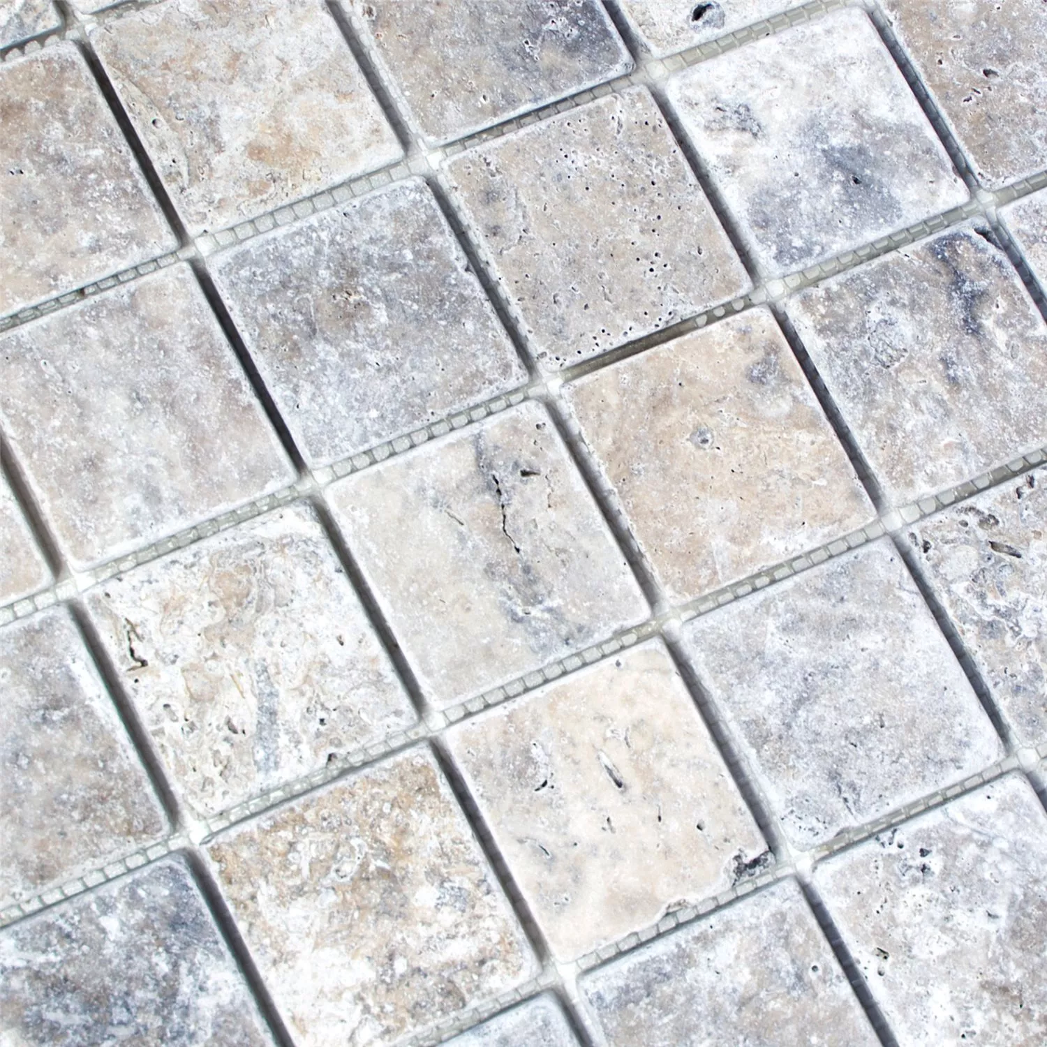 Αυτά τα μωσαϊκά πλακάκια Nestor Silver 48 κατασκευασμένα από στιβαρό φυσικό υλικό τραβερτίνη κόβονται απευθείας από την πέτρα. Η πέτρα φαίνεται να έχει μια ελαφρώς ασημί λάμψη. Είναι εξαιρετικά για όλους τους εξωτερικούς χώρους. Το υλικό είναι ελαφρώς δομημένο. Αυτό διασφαλίζει ότι το νερό μπορεί να τρέξει γρήγορα στις πέτρες, καθιστώντας την επιφάνεια σκληρή γρήγορα. Ακόμη και στον παγετό, η πέτρα δεν γλιστράει αν είναι ελαφρώς υγρή αλλά μπορεί να χρησιμοποιηθεί.