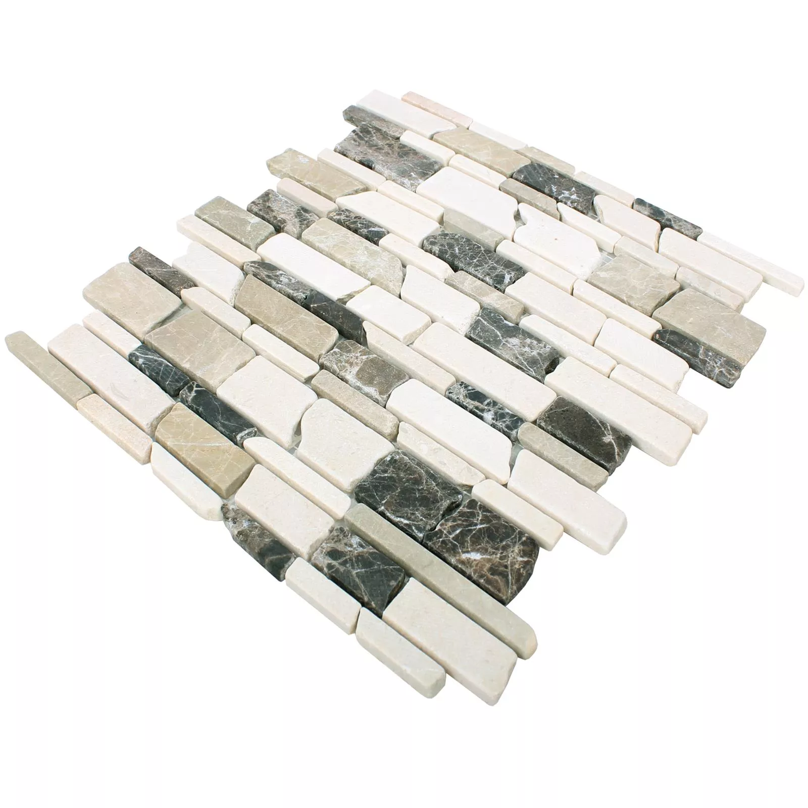 Οι τόνοι μπορούν να τεθούν με πολύ διαφορετικούς τρόπους με αυτά τα πλακάκια μπάνιου. Είναι κατάλληλα για το σχεδιασμό ενός χώρου ντους ή για εγκαταστάσεις πριν τον τοίχο. Μπορούν να χρησιμοποιηθούν για την οπτική μεγέθυνση των κόγχων των τοίχων. Μπορούν επίσης να χρησιμοποιηθούν ως σύνορα μεταξύ μεγάλων πλακιδίων μπάνιου για να σπάσουν οπτικά τον τοίχο. Λόγω της φυσικής τους φύσης, ο σχεδιασμός του δωματίου είναι πολύ διαφορετικός. Επιπλέον, τα μαρμάρινα μωσαϊκά πλακάκια δημιουργούν έναν διαχρονικό χαρακτήρα και το δικό σας μπάνιο γίνεται σπα.