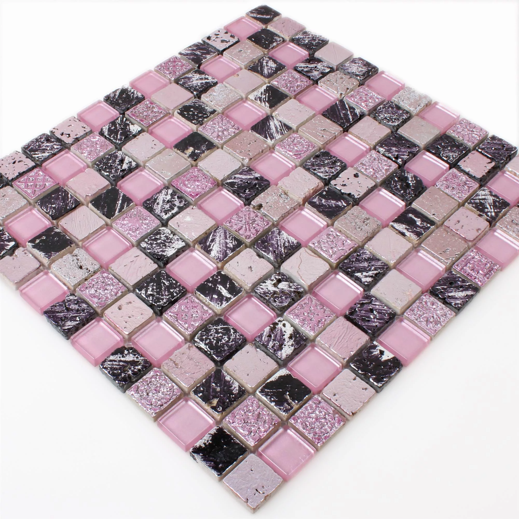 Τα μοντέρνα μωσαϊκά πλακάκια Glass Resin Stone Mix Colicos σε ροζ χρώμα είναι κατασκευασμένα από φυσική πέτρα και ανοίγουν εντελώς νέες προοπτικές στην εσωτερική διακόσμηση. Τα πλακάκια από φυσική πέτρα με επιφάνεια από γυαλί και ρητίνη είναι διαθέσιμα τόσο σε γυαλιστερή όσο και σε ματ εκδοχή και μπορούν να επιδειχθούν κομψά στο μπάνιο, την κουζίνα και το σαλόνι. Ο μοναδικός συνδυασμός χρωμάτων και η πρώτης τάξεως κατασκευή είναι πειστικά σε όλα τα επίπεδα.
