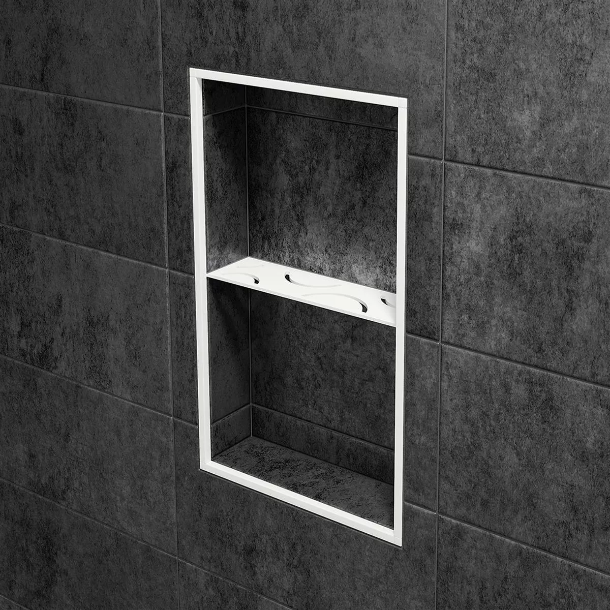 Schlüter-SHELF-N-S1 Λευκό Ορθογώνιο ράφι τοίχου Με το Schlüter-SHELF-N-S1 μπορείτε να εξοπλίσετε την προκατασκευασμένη κόγχη Schlüter-KERDI-BOARD με ένα ράφι που εφαρμόζει με ακρίβεια κατά την τοποθέτηση πλακιδίων. Δεν είναι μόνο αυτό: έχετε επίσης τη μέγιστη ευελιξία όσον αφορά το υλικό και το σχεδιασμό. Το υψηλής ποιότητας ράφι τοίχου είναι κατασκευασμένο είτε από βουρτσισμένο ανοξείδωτο χάλυβα είτε από αλουμίνιο με επίστρωση υφής.
