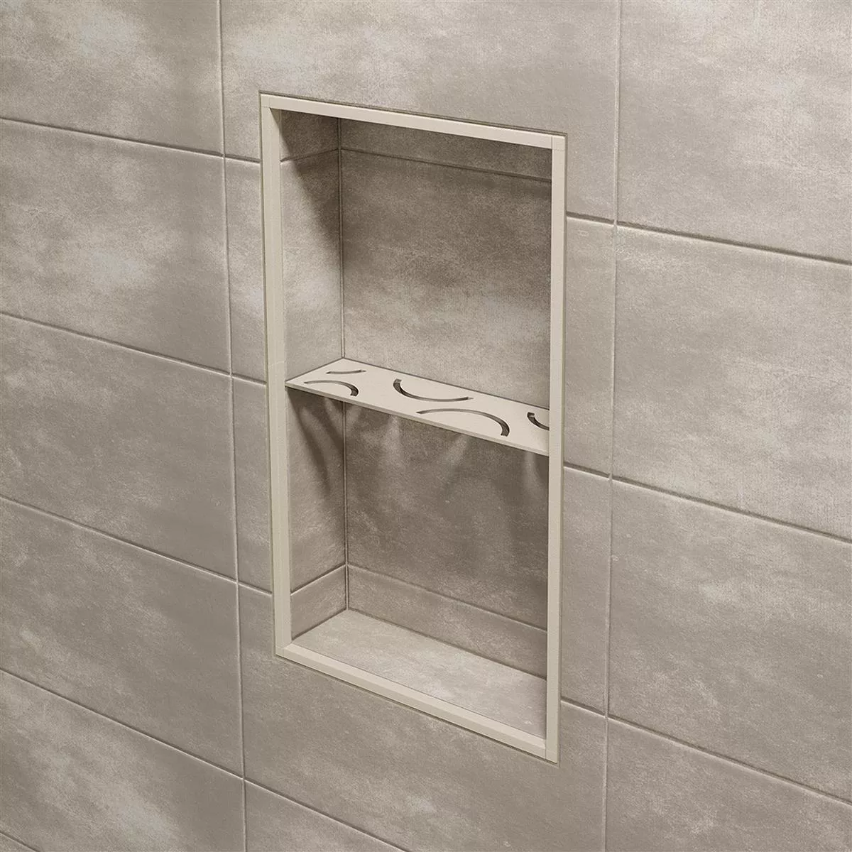 Schlüter-SHELF-N-S1 Ορθογώνιο ράφι τοίχου από ελεφαντόδοντο Με το Schlüter-SHELF-N-S1 μπορείτε να εξοπλίσετε την προκατασκευασμένη κόγχη Schlüter-KERDI-BOARD με ένα ράφι που εφαρμόζει με ακρίβεια κατά την τοποθέτηση πλακιδίων. Δεν είναι μόνο αυτό: έχετε επίσης τη μέγιστη ευελιξία όσον αφορά το υλικό και το σχεδιασμό. Το υψηλής ποιότητας ράφι τοίχου είναι κατασκευασμένο είτε από βουρτσισμένο ανοξείδωτο χάλυβα είτε από αλουμίνιο με επίστρωση υφής.