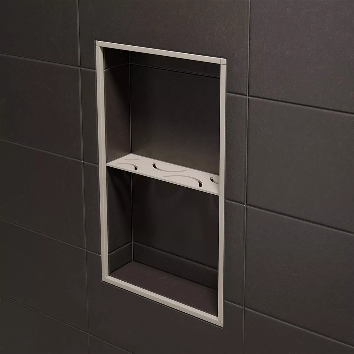 Schlüter-SHELF-N-S1 Κρέμα Ορθογώνιο ράφι τοίχου με κόγχη Με το Schlüter-SHELF-N-S1 μπορείτε να εξοπλίσετε την προκατασκευασμένη κόγχη Schlüter-KERDI-BOARD με ένα ράφι που εφαρμόζει με ακρίβεια κατά την τοποθέτηση πλακιδίων. Δεν είναι μόνο αυτό: έχετε επίσης τη μέγιστη ευελιξία όσον αφορά το υλικό και το σχεδιασμό. Το υψηλής ποιότητας ράφι τοίχου είναι κατασκευασμένο είτε από βουρτσισμένο ανοξείδωτο χάλυβα είτε από αλουμίνιο με επίστρωση υφής.