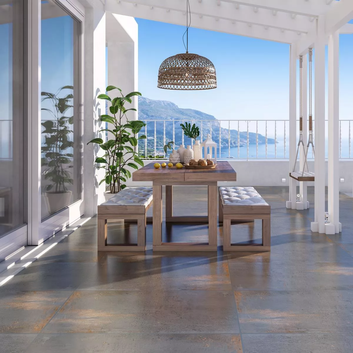 Das quadratische Format und die matte, glasierte Oberfläche verleihen der Fliese eine moderne und ansprechende Ausstrahlung, die sich harmonisch in verschiedene Umgebungen einfügt. Hergestellt aus Feinsteinzeug, zeichnet sich die Terrassenplatte durch eine hohe Abriebfestigkeit (Abriebklasse 4) aus, was sie besonders widerstandsfähig gegen Abnutzung macht. Die Platte ist frostbeständig und frostsicher, wodurch sie auch bei niedrigen Temperaturen keine Schäden nimmt. Ihre rektifizierten Kanten ermöglichen eine präzise und enge Fugenverlegung, während die glasierte Oberfläche zusätzlichen Schutz und Langlebigkeit bietet. Dank der Rutschhemmung R10 sorgt die Platte zudem für mehr Sicherheit.