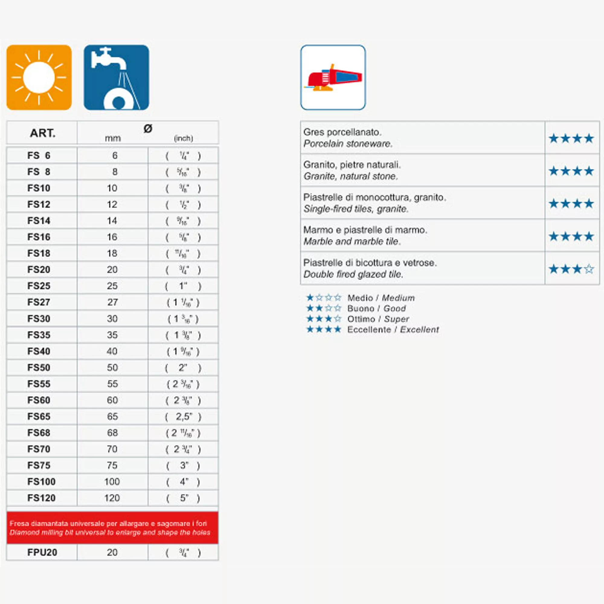 Με το διαμαντένιο τρυπάνι έχετε πολλές επιλογές για να πραγματοποιήσετε μια πολύ καλή διάτρηση. Επειδή το διαμάντι είναι γνωστό ότι είναι το ισχυρότερο ορυκτό που υπάρχει στον κόσμο και επομένως έχετε μια πολύ καθαρή και ακριβή εργασία που μπορείτε να κάνετε ανά πάσα στιγμή με αυτό το τρυπάνι. Μπορείτε να κάνετε ξηρή διάτρηση με το τρυπάνι. Αυτό είναι πολύ απλό και λειτουργεί πάντα. Επιπλέον, το αποτέλεσμα είναι πολύ ακριβές και λεπτό. Μπορείτε επίσης να εργαστείτε σε πολλά άλλα υλικά με αυτό το τρυπάνι. Αυτό περιλαμβάνει επίσης κεραμικά. Συχνά συμβαίνει με τα κεραμικά που η γεώτρηση ραγίζει και ολόκληρο το αντικείμενο σπάει. Αυτό δεν συμβαίνει εδώ. Με το τρυπάνι έχεις πάντα ένα καλό αποτέλεσμα. Ακόμη και ο γρανίτης, μια πολύ σκληρή πέτρα, μπορεί εύκολα να τρυπηθεί με το τρυπάνι. Με αυτόν τον τρόπο μπορείτε να διασφαλίσετε ότι αυτή η εργασία μπορεί επίσης να ολοκληρωθεί εύκολα. Είναι επίσης εύκολο να δουλέψετε με πορσελάνη.